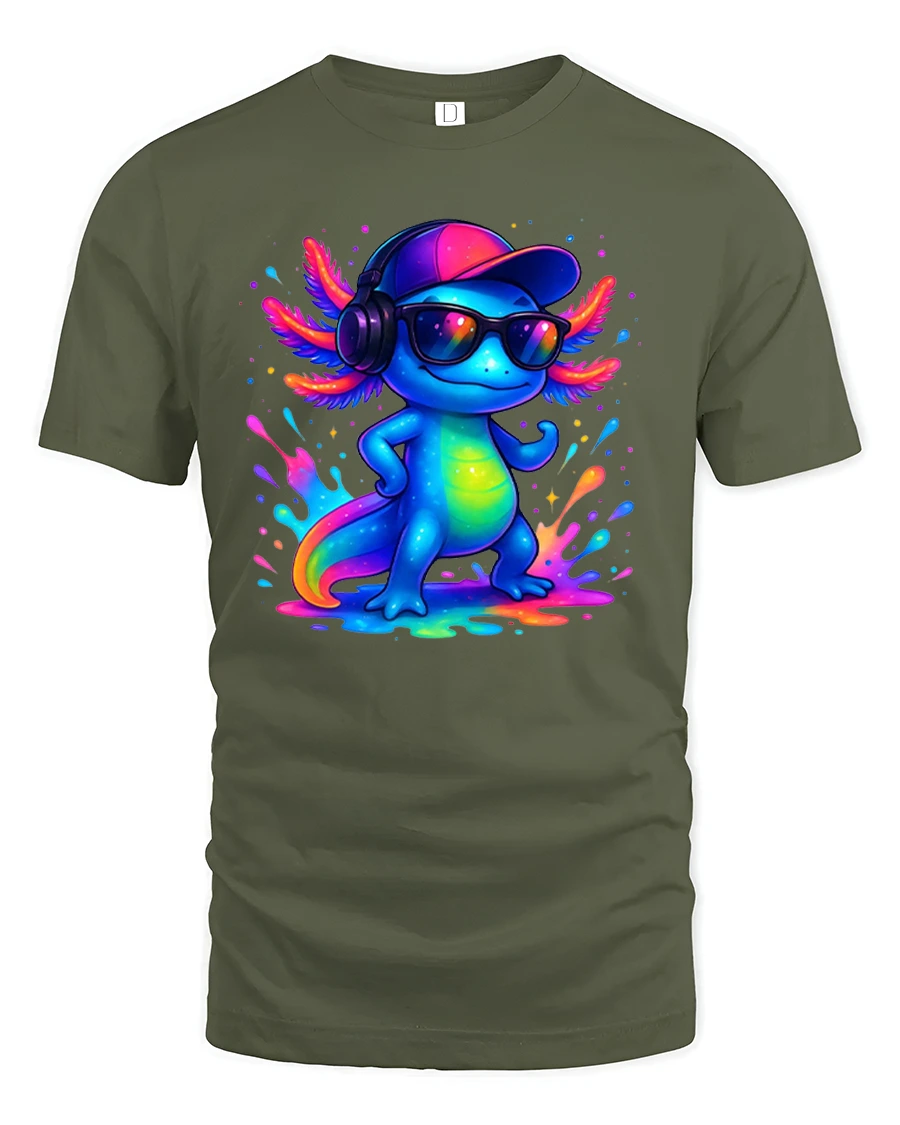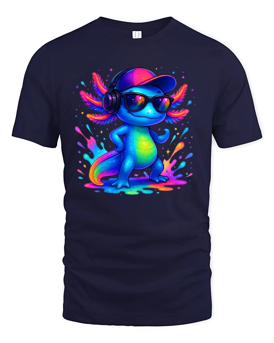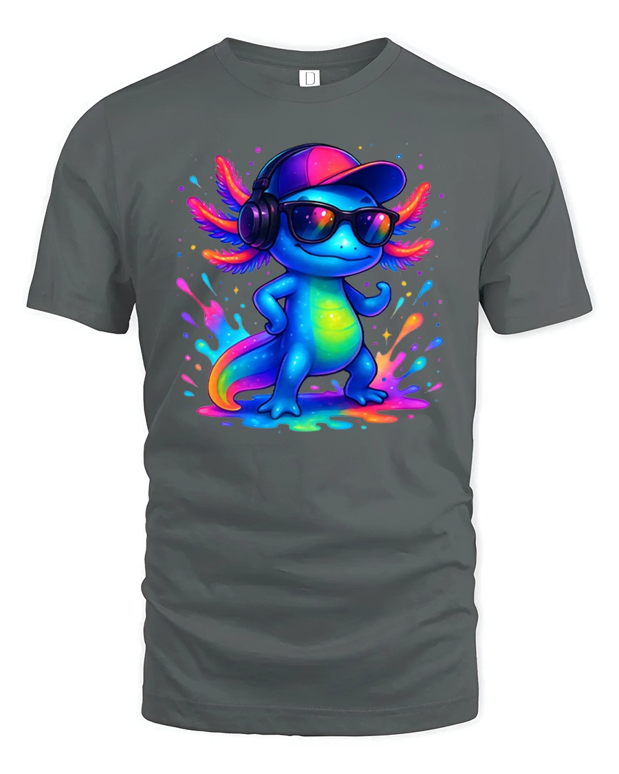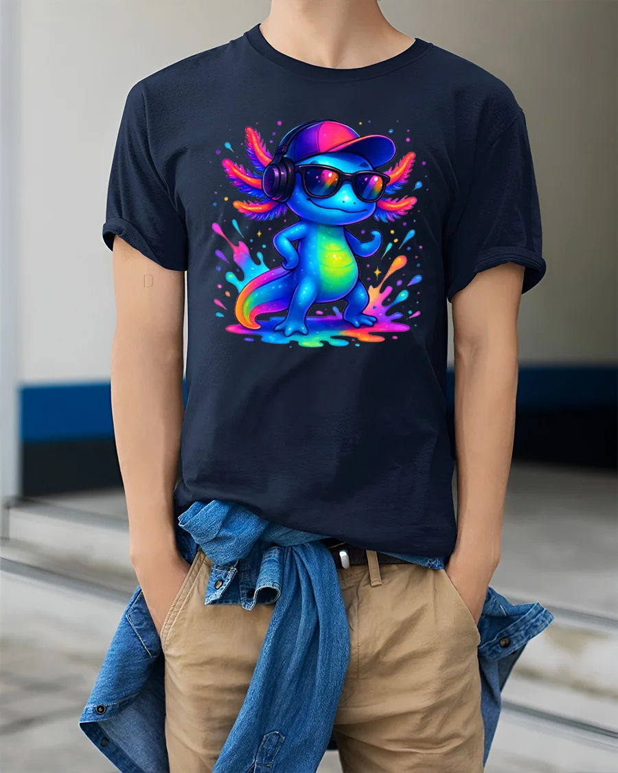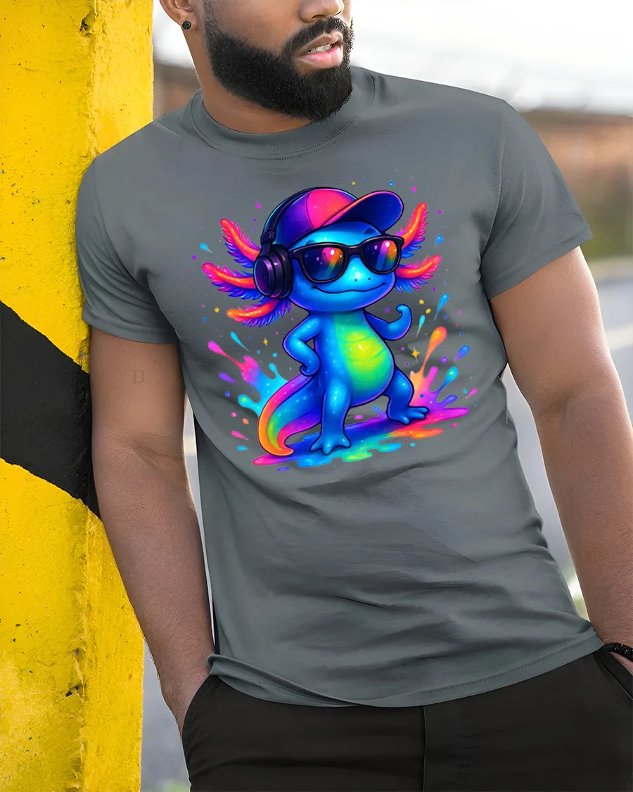 Cool Axolotl DJ Neon Splash Streetwear T-Shirt is made for those who love color, music, and confidence.
