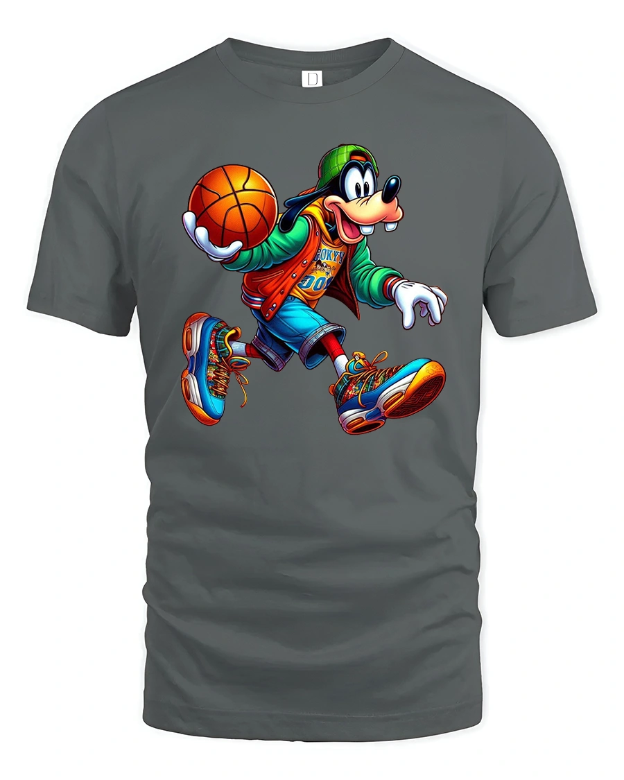 Featuring a colorful cartoon-style basketball player in motion, this tee captures the excitement, swagger, and creativity of street basketball culture.