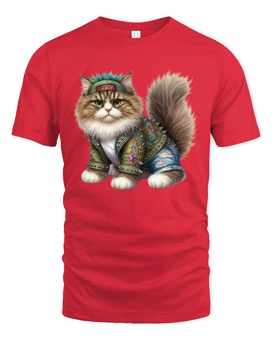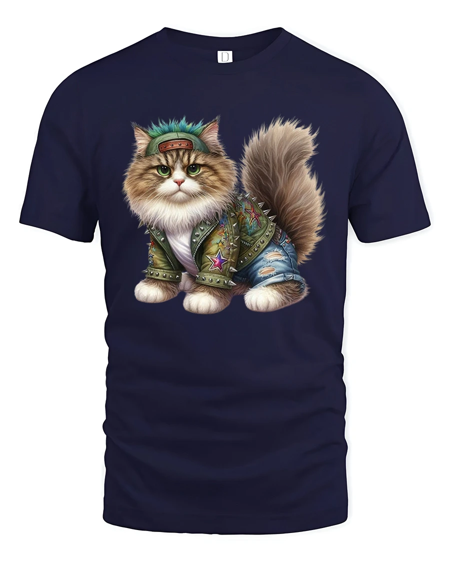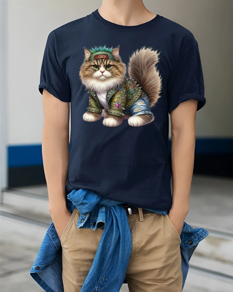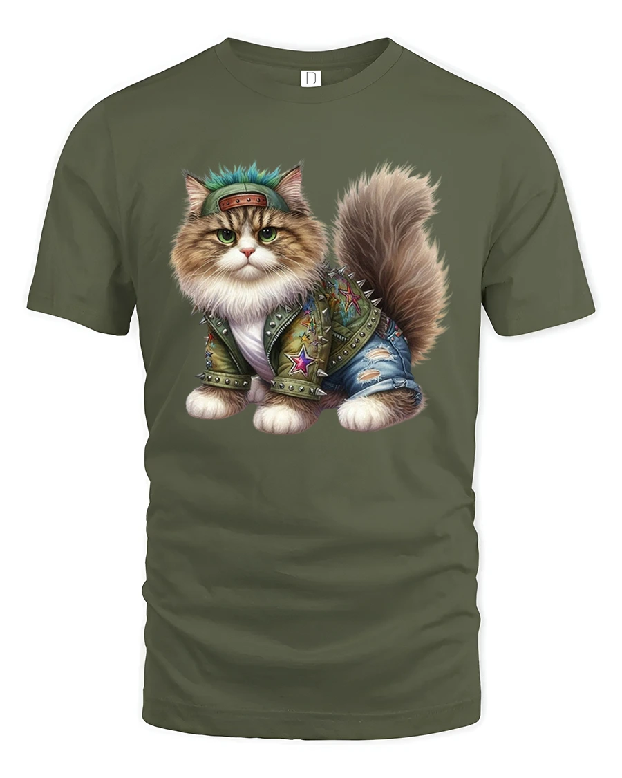 Cool Cat T-Shirt Funny Street Style Furry Graphic Tee brings purr-fect attitude and charm to your outfit. Featuring a fluffy cat dressed in a studded jacket, jeans, and a backward cap, this design mixes cuteness with a bold, urban vibe. It’s the ultimate tee for cat lovers who like their fashion with a twist of humor and street cool.