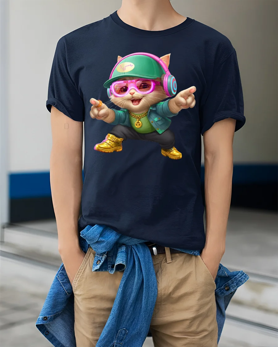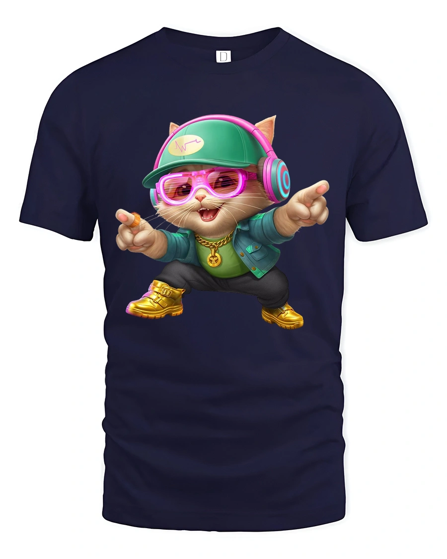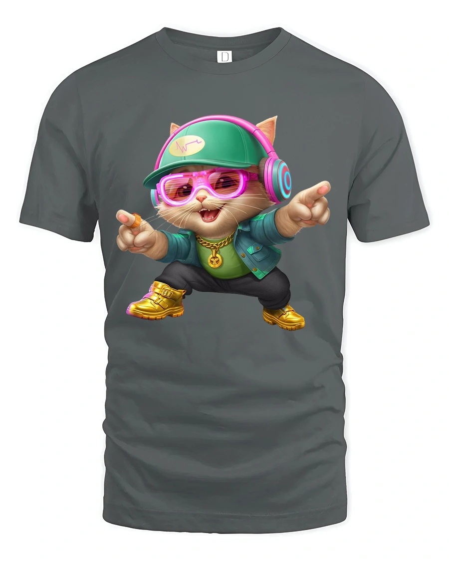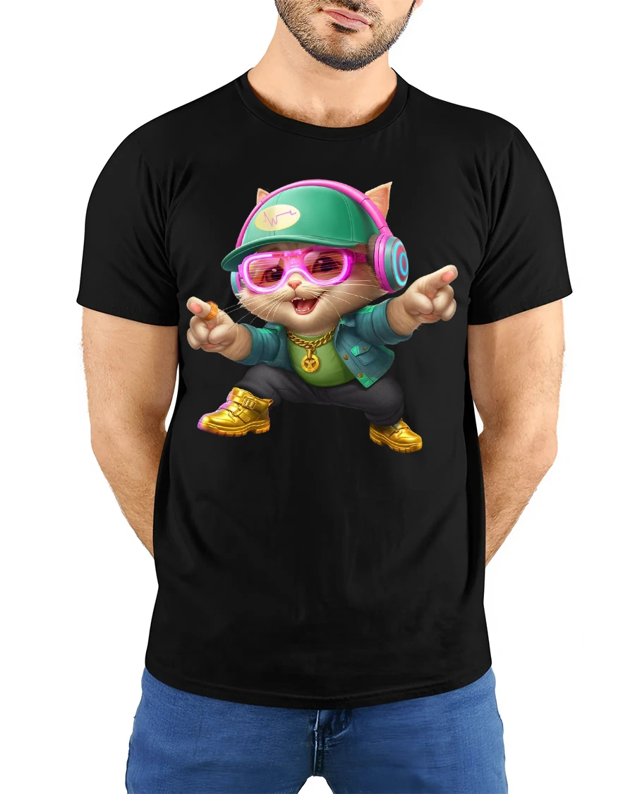 Cool DJ Cat Tshirt Hip Hop Dance Style Neon Street Art delivers a bold playful energy inspired by music street culture and fun character design.