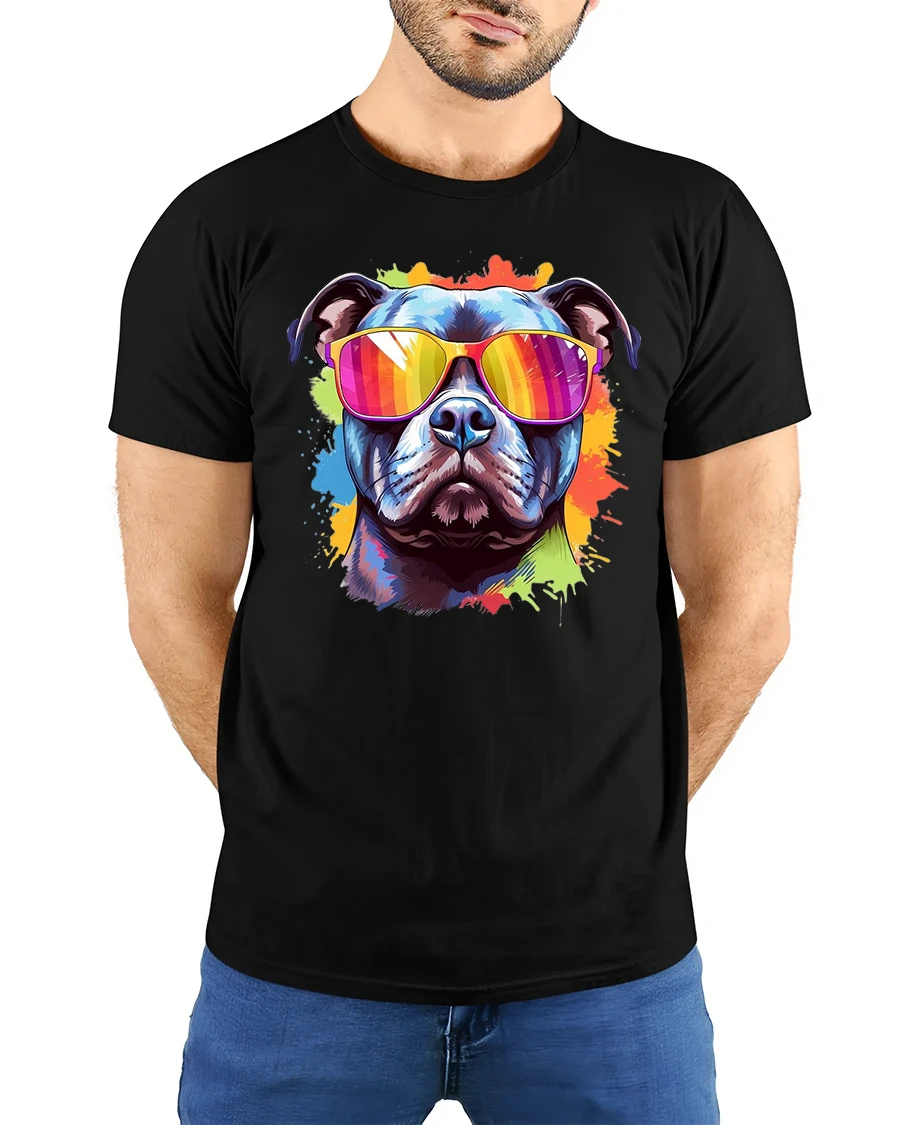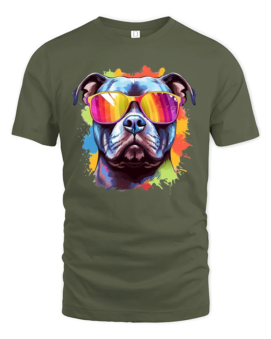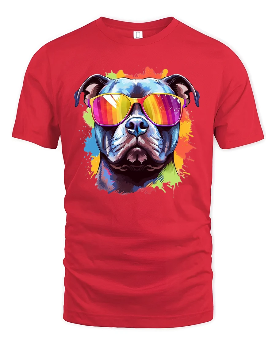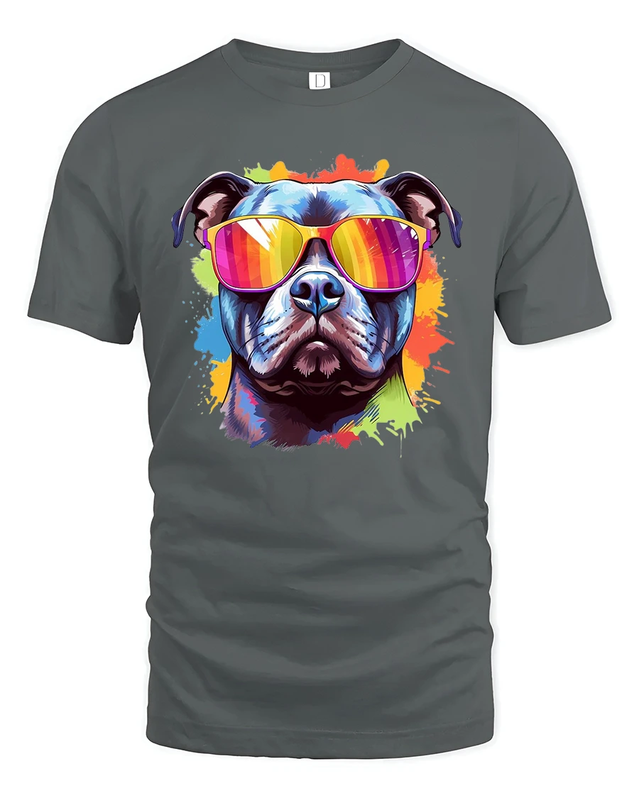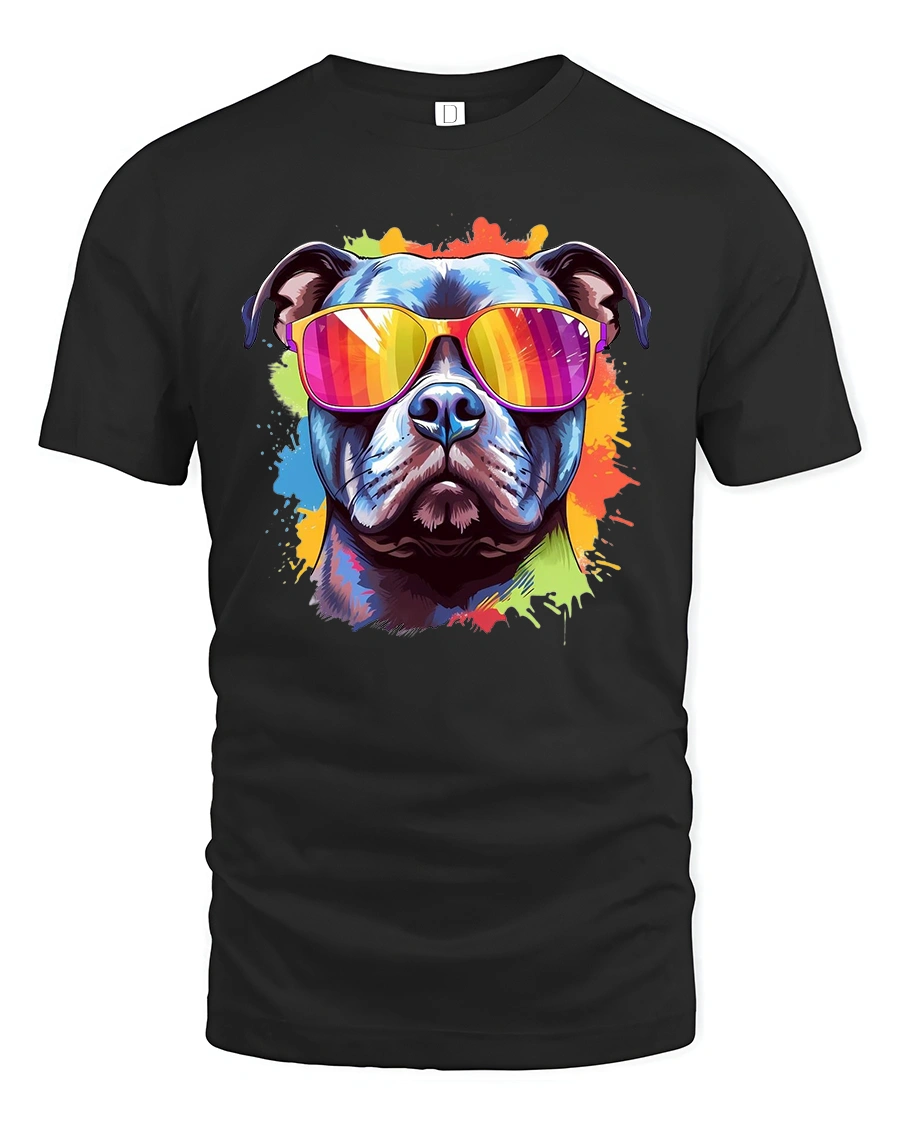 Cool Dog With Sunglasses Colorful Art Graphic T-Shirt brings pure attitude, color, and fun to your everyday look.