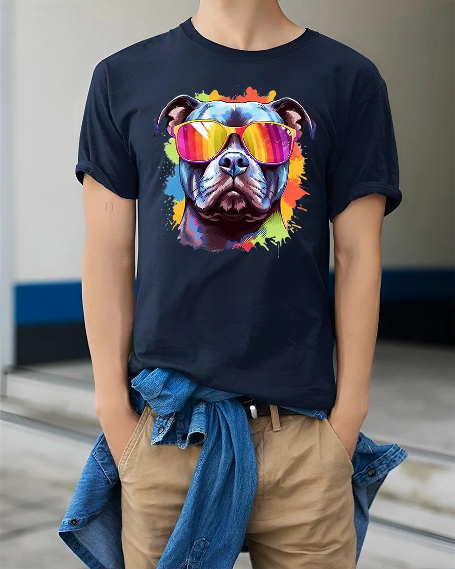 Show off your fun, fearless side with the Cool Dog With Sunglasses Colorful Art Graphic T-Shirt — the perfect tee for dog lovers, trendsetters, and anyone who loves art with attitude.