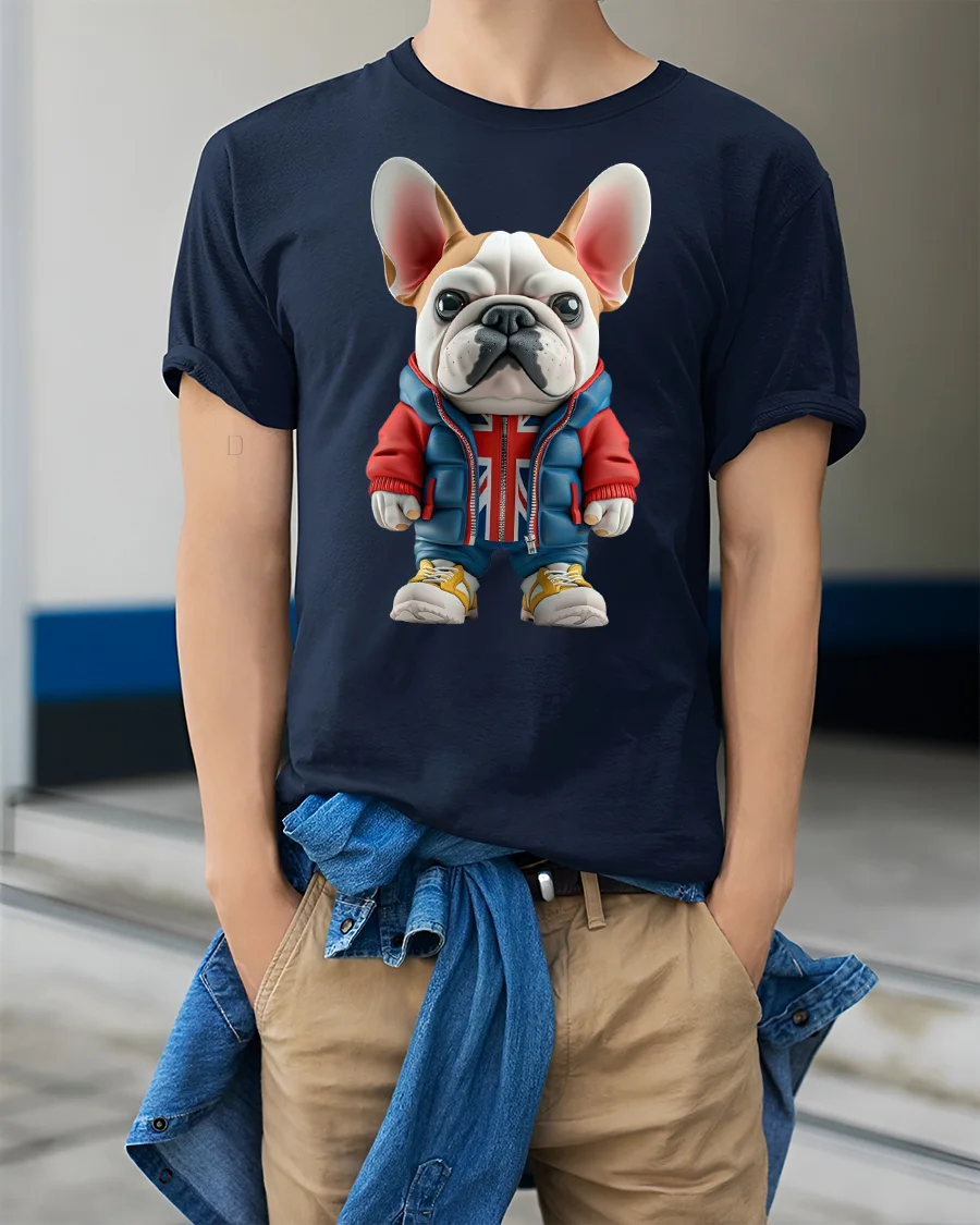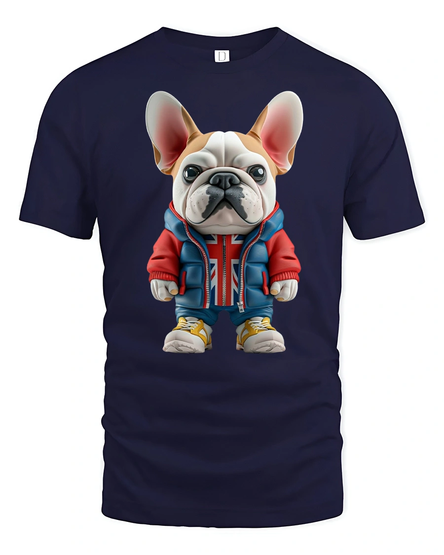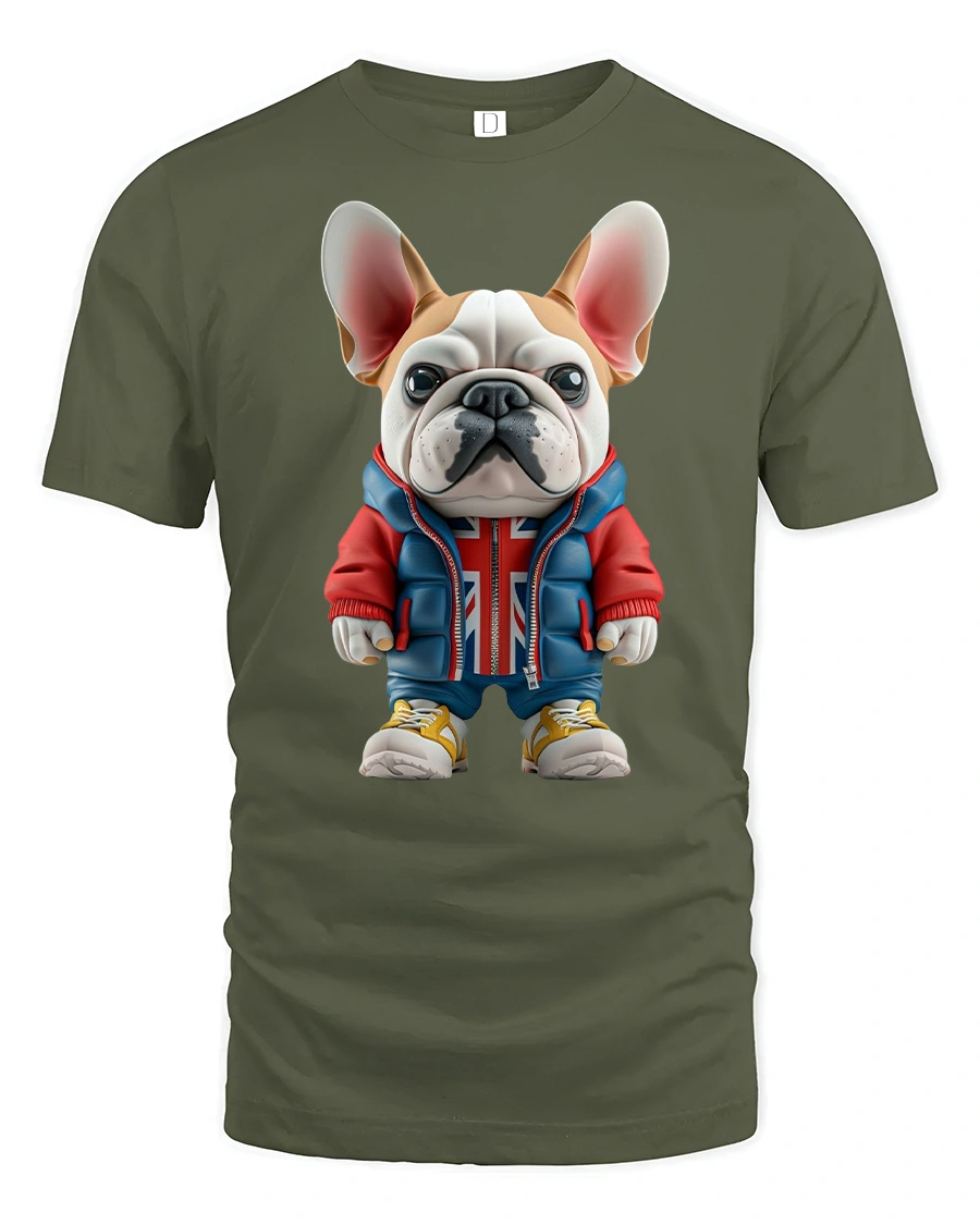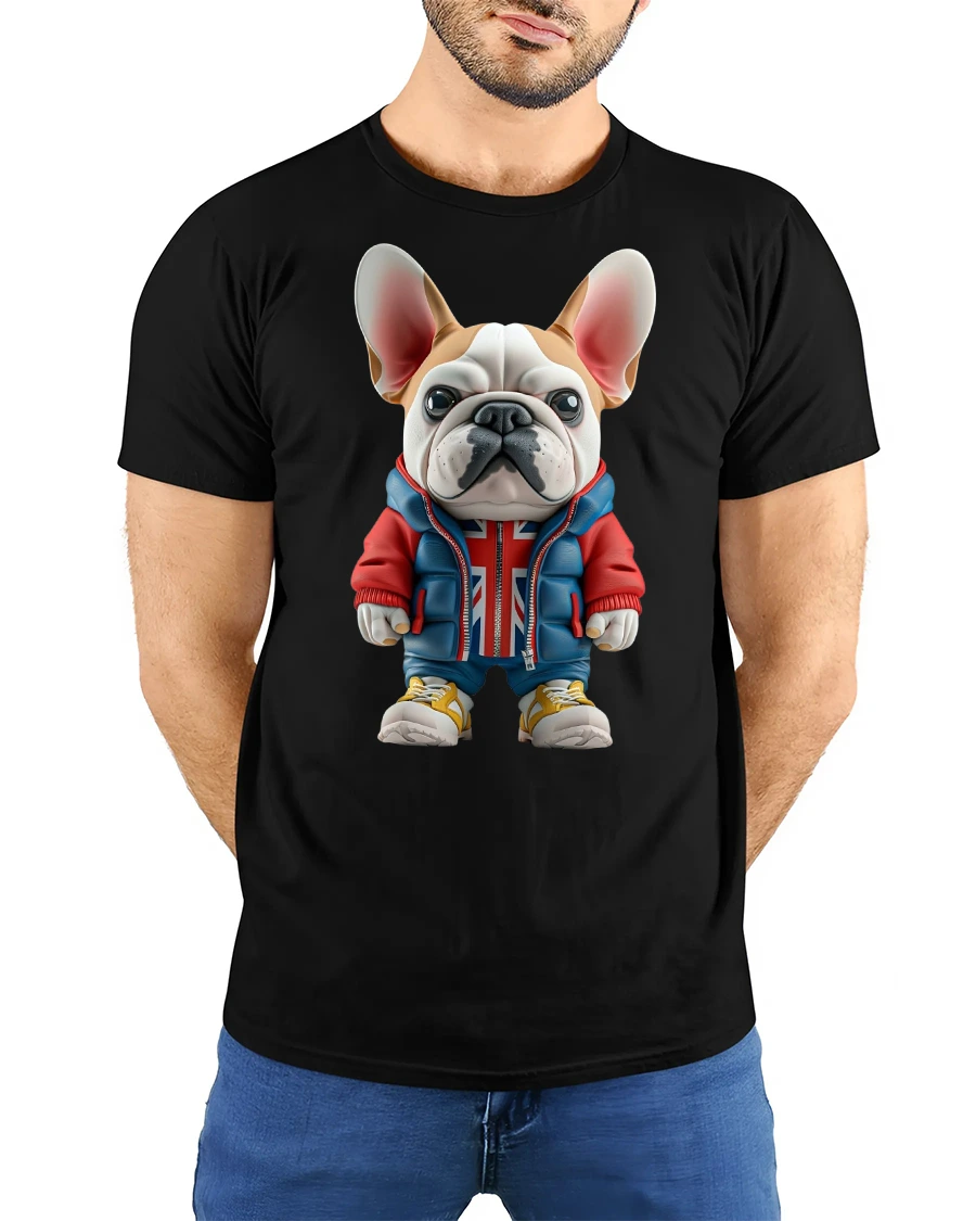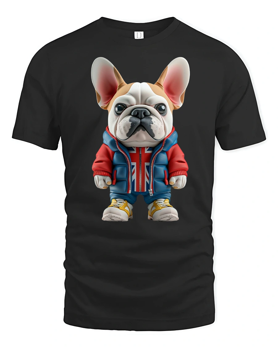 Add a playful touch to your wardrobe with the Cool French Bulldog Streetwear Graphic T-Shirt. Featuring an adorable French Bulldog dressed in a hoodie with a Union Jack design, sneakers, and streetwear style, this tee perfectly blends humor and fashion. It’s a must-have for dog lovers and anyone who enjoys unique, eye-catching designs.