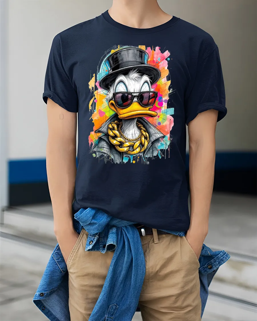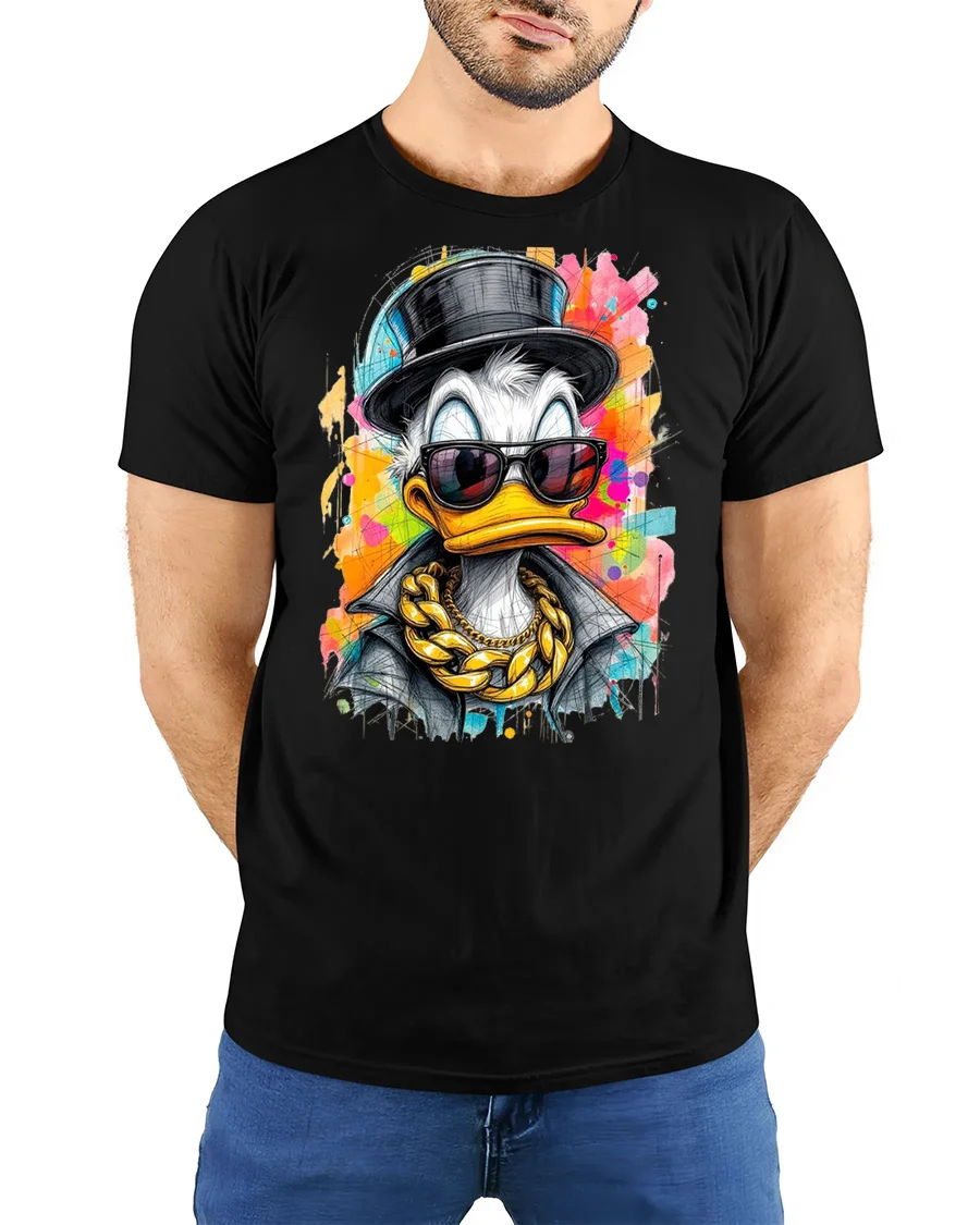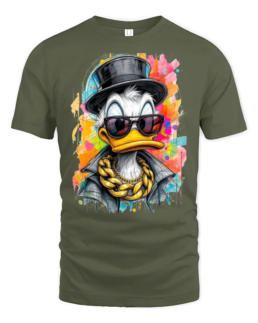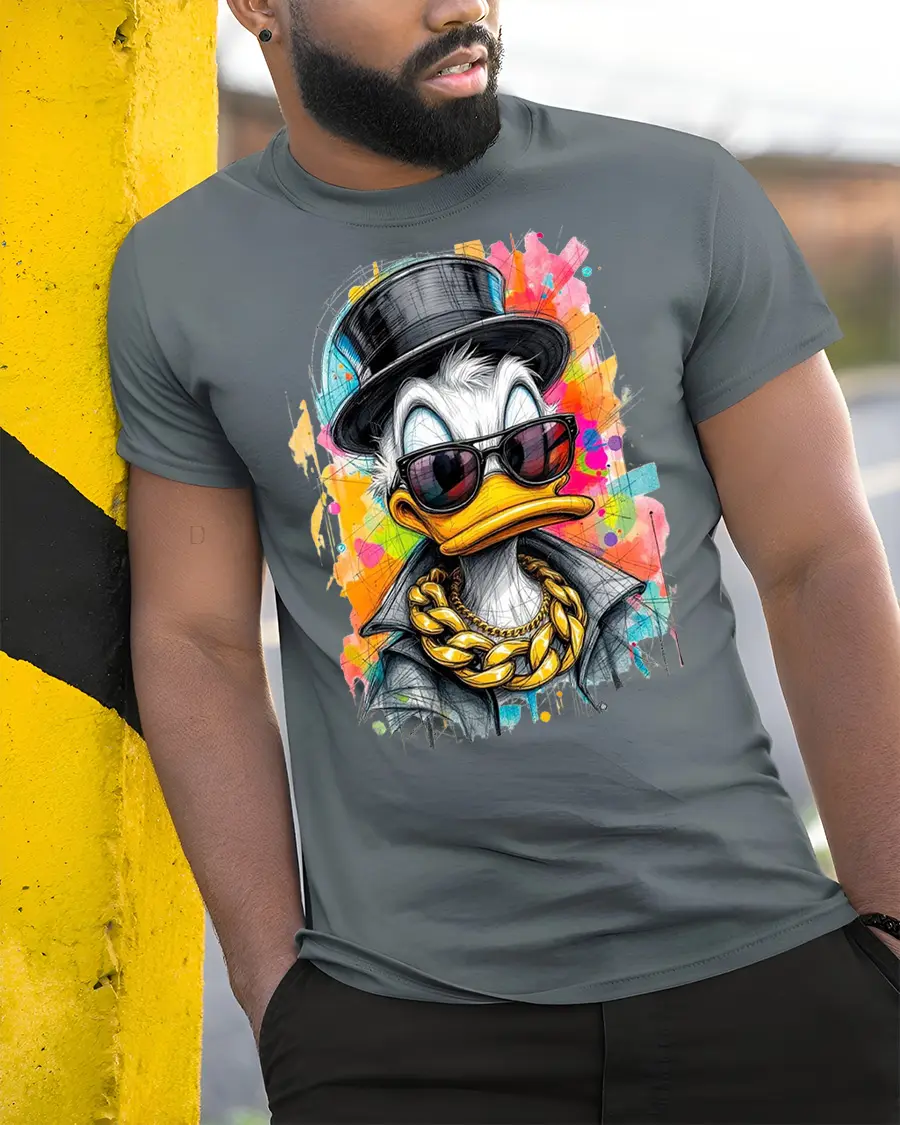 Cool Gangster Duck With Gold Chain Street Art Graphic T Shirt brings a bold mix of humor and urban culture into a standout wearable design.