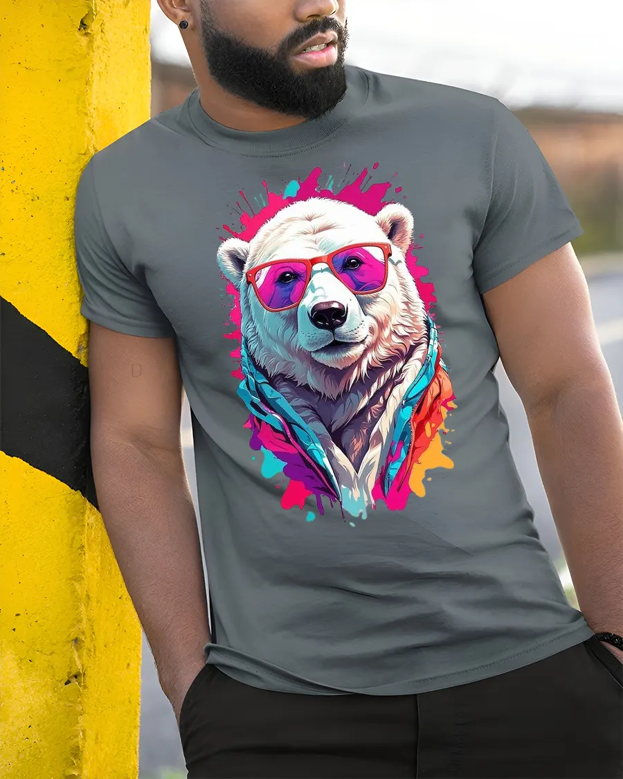 Crafted from high-quality, soft, and breathable fabric, this tee ensures maximum comfort for everyday wear. The colorful splash design is durable and long-lasting, keeping your outfit looking sharp and stylish wash after wash. Elevate your casual fashion game with this fun and vibrant polar bear graphic tee that’s as cool as ice.