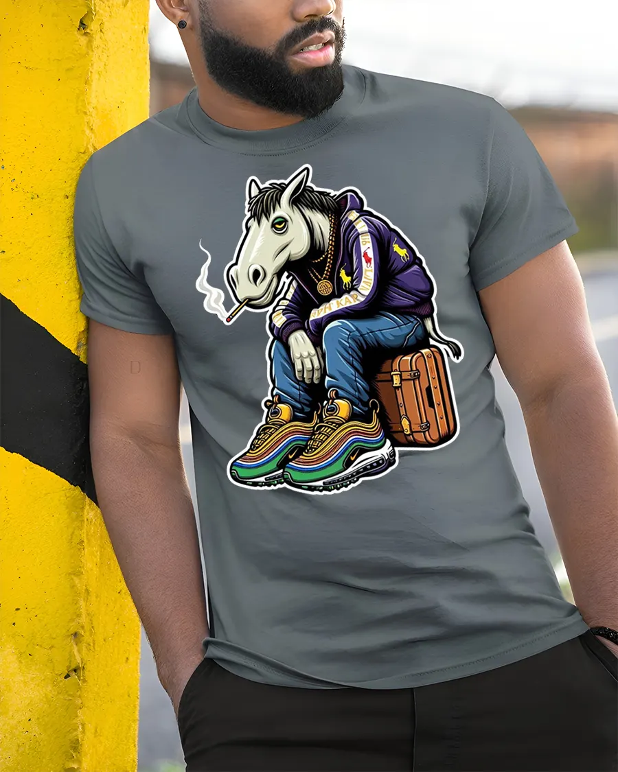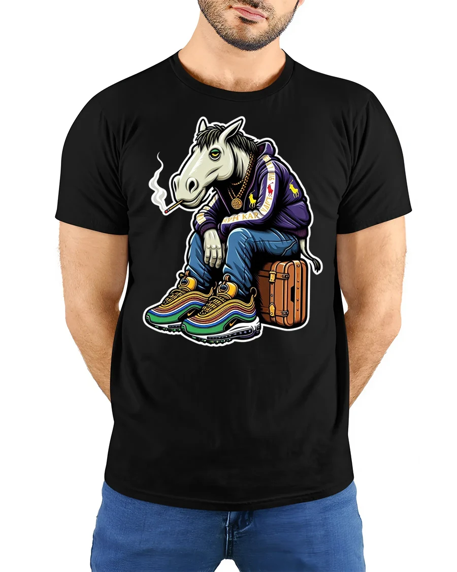 The Cool Smoking Horse Street Art Graphic T Shirt Urban Style delivers a bold mix of humor and street inspired creativity.