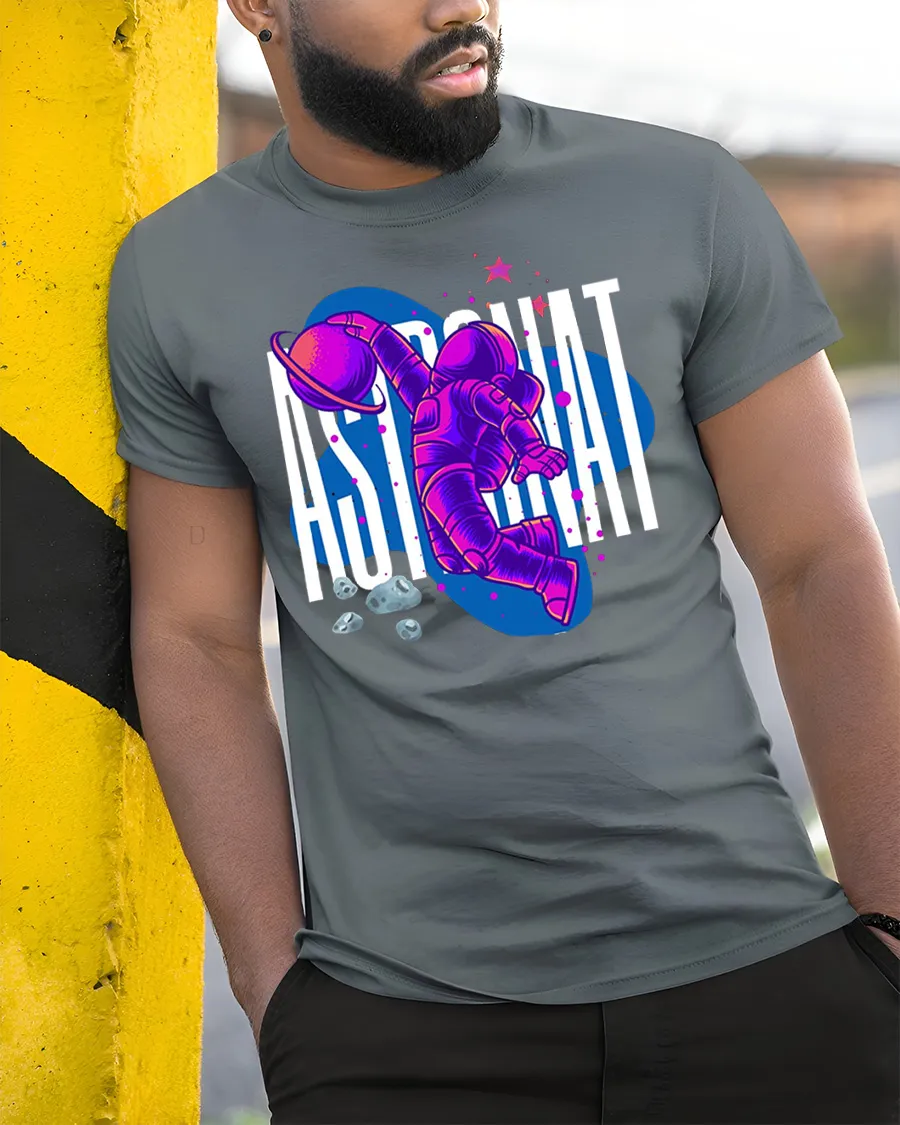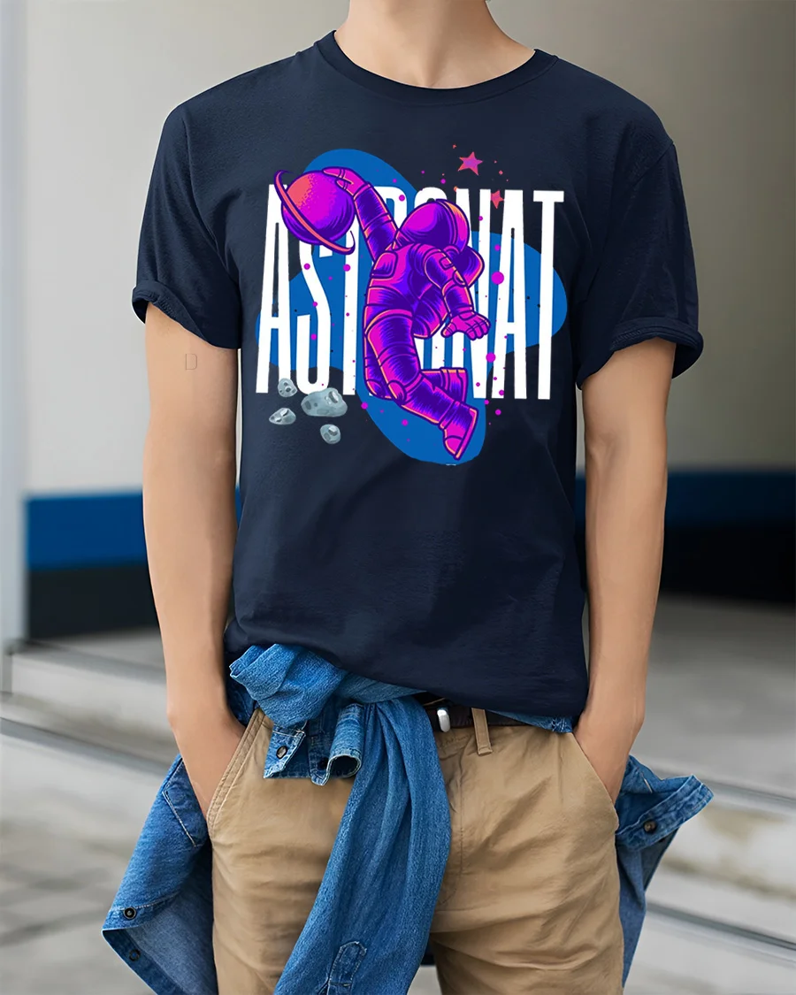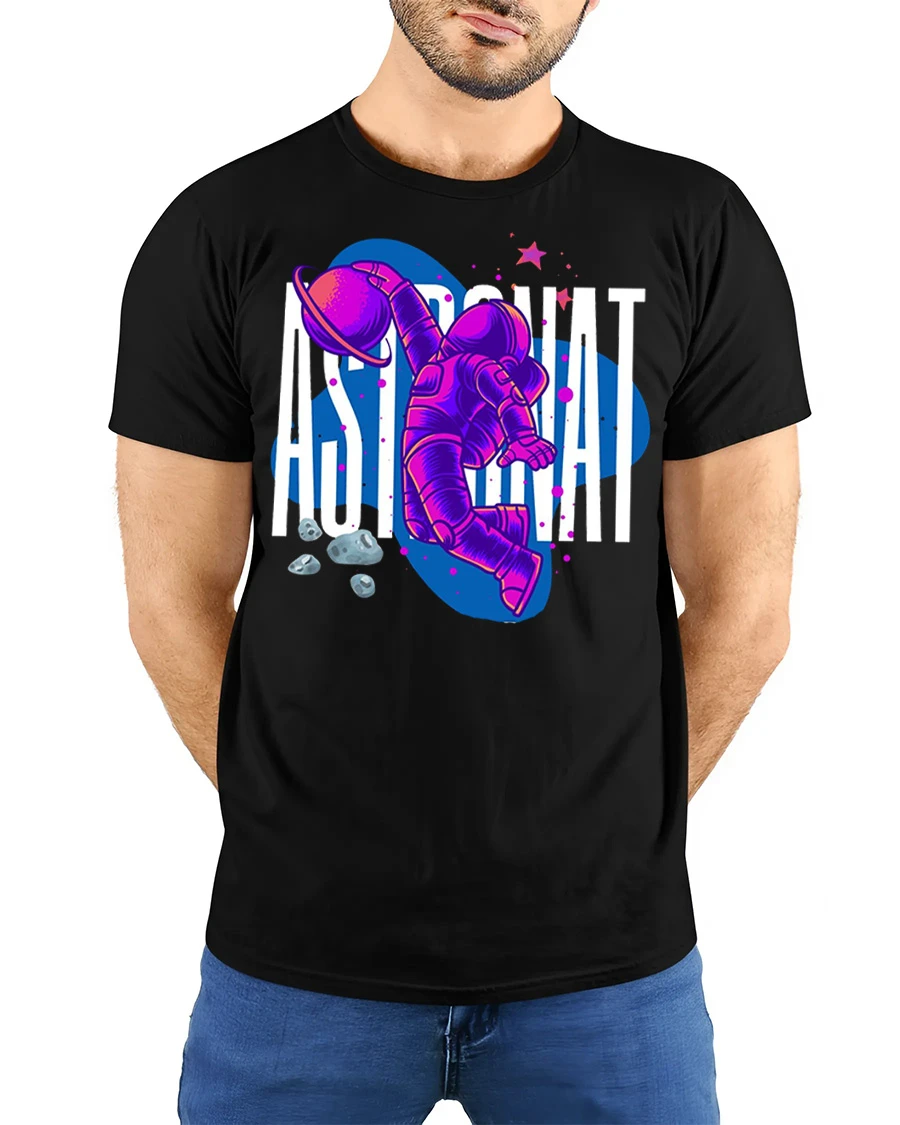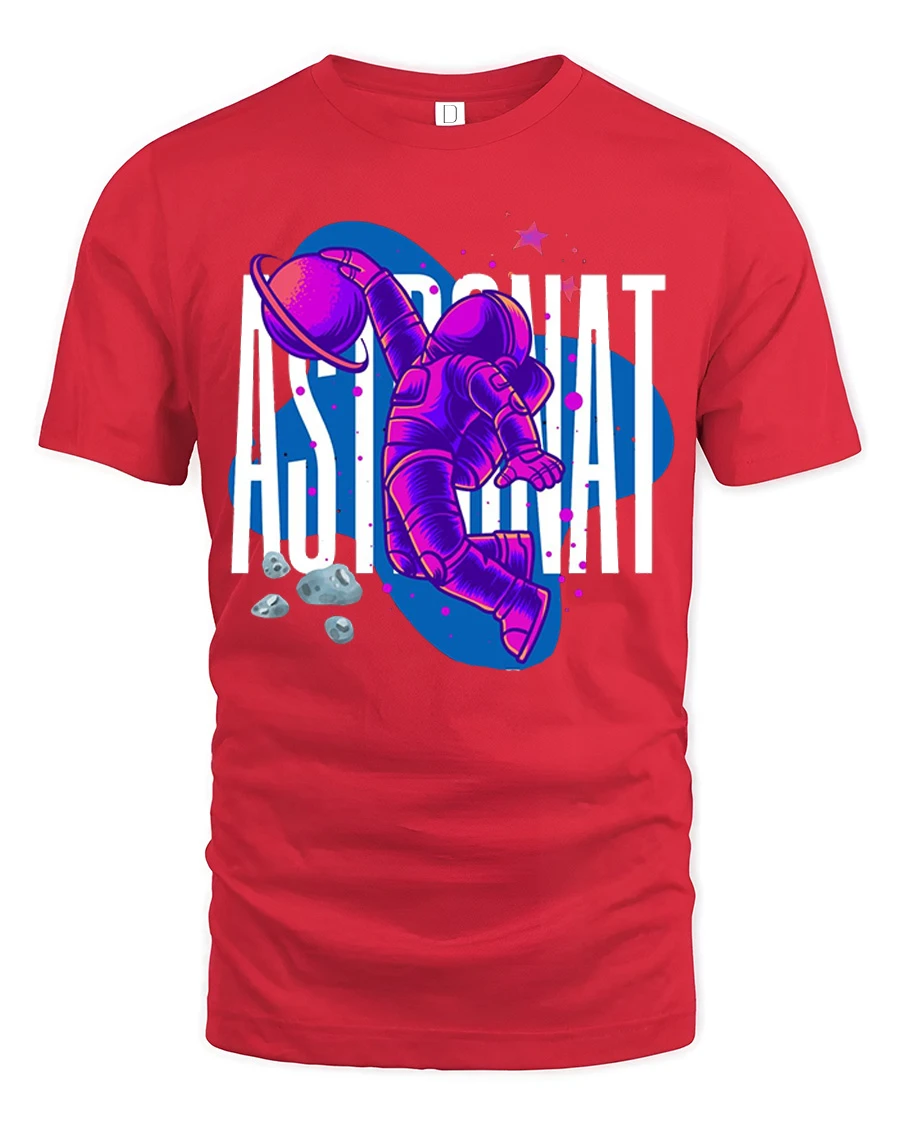 Featuring a vibrant astronaut floating through space with eye catching planet artwork, this t shirt creates a fun and stylish cosmic vibe that instantly grabs attention.