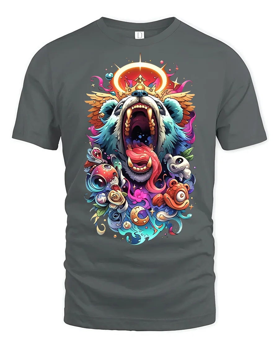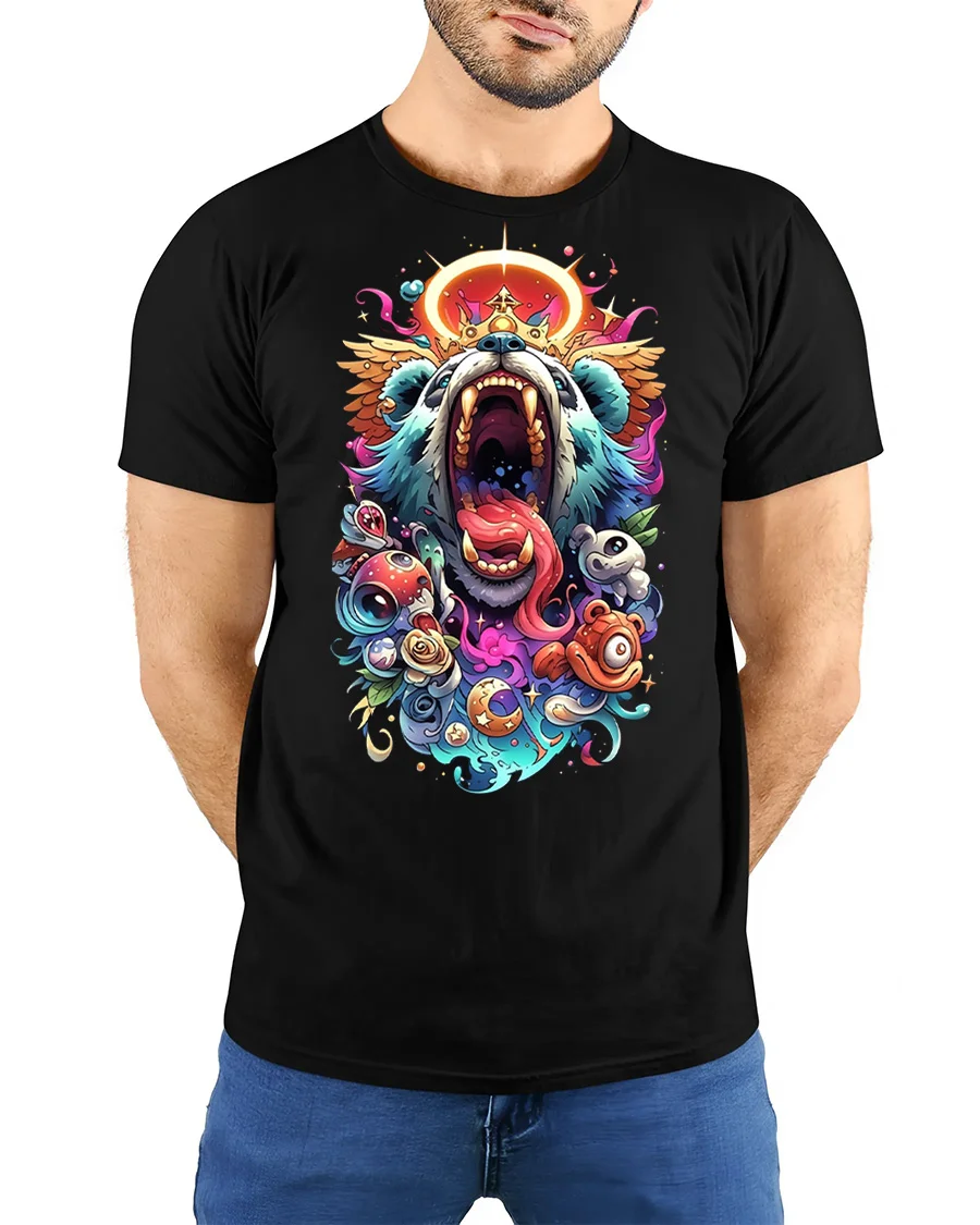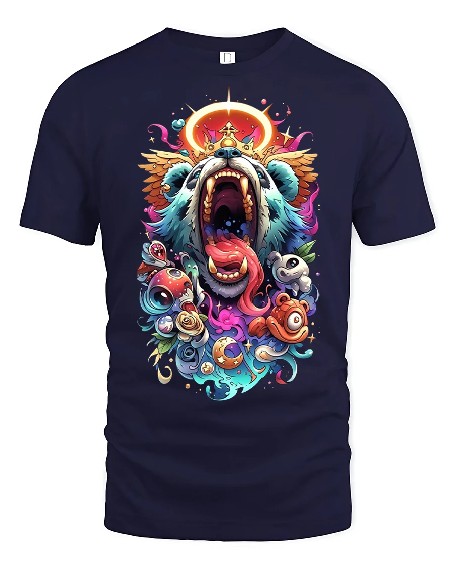 Cosmic Roaring Bear Psychedelic Art Graphic T Shirt