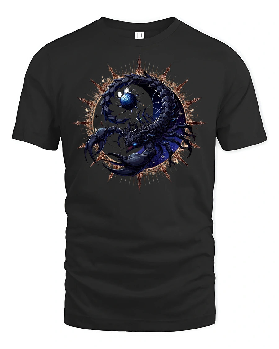 Cosmic Scorpion Zodiac Astrology Graphic T-Shirt is a bold and mystical design that blends celestial energy with fierce scorpion imagery. Featuring a powerful scorpion wrapped around a glowing cosmic orb against a fiery backdrop, this tee is perfect for astrology lovers, scorpio zodiac fans, and anyone drawn to dark, cosmic-themed art.