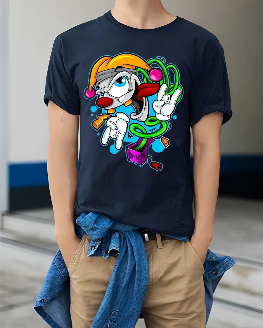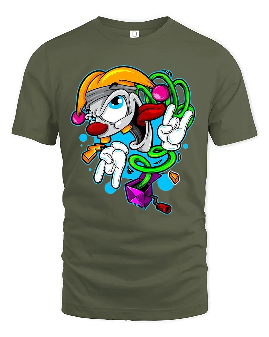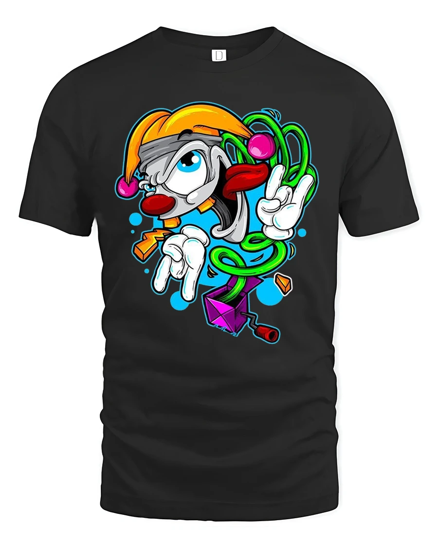 The Crazy Cartoon Clown Doodle Art Graphic Tshirt delivers playful energy with bold color and expressive character design.