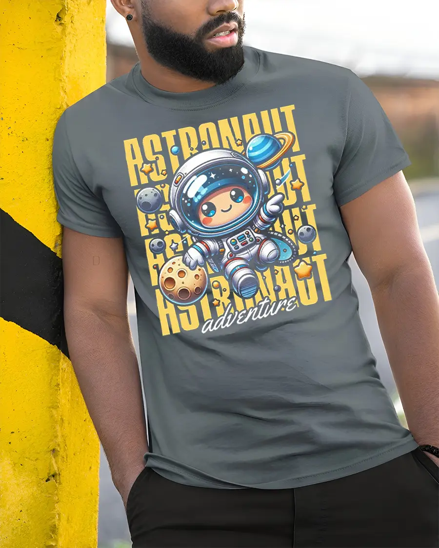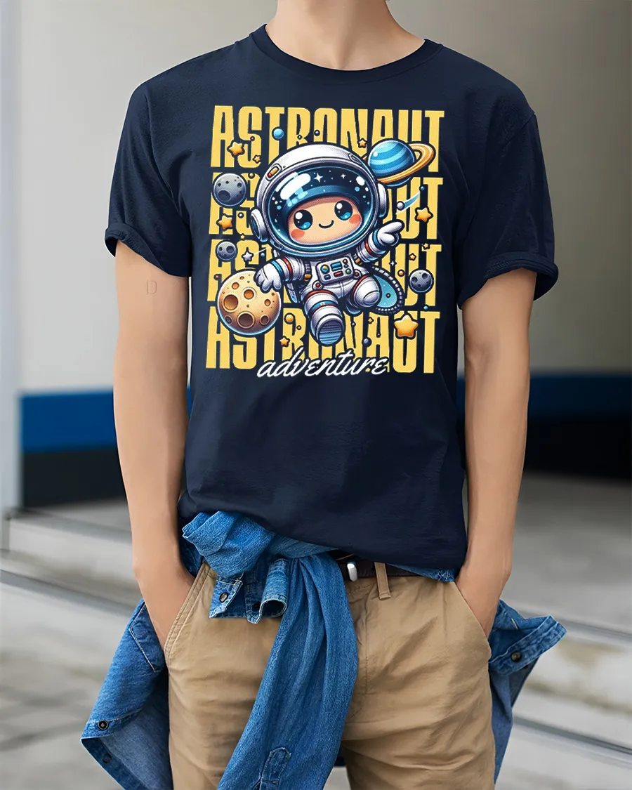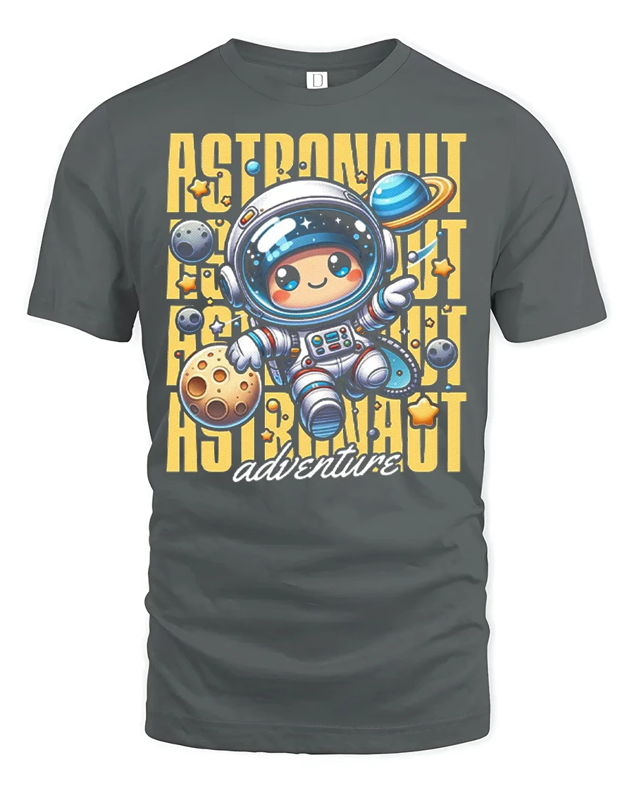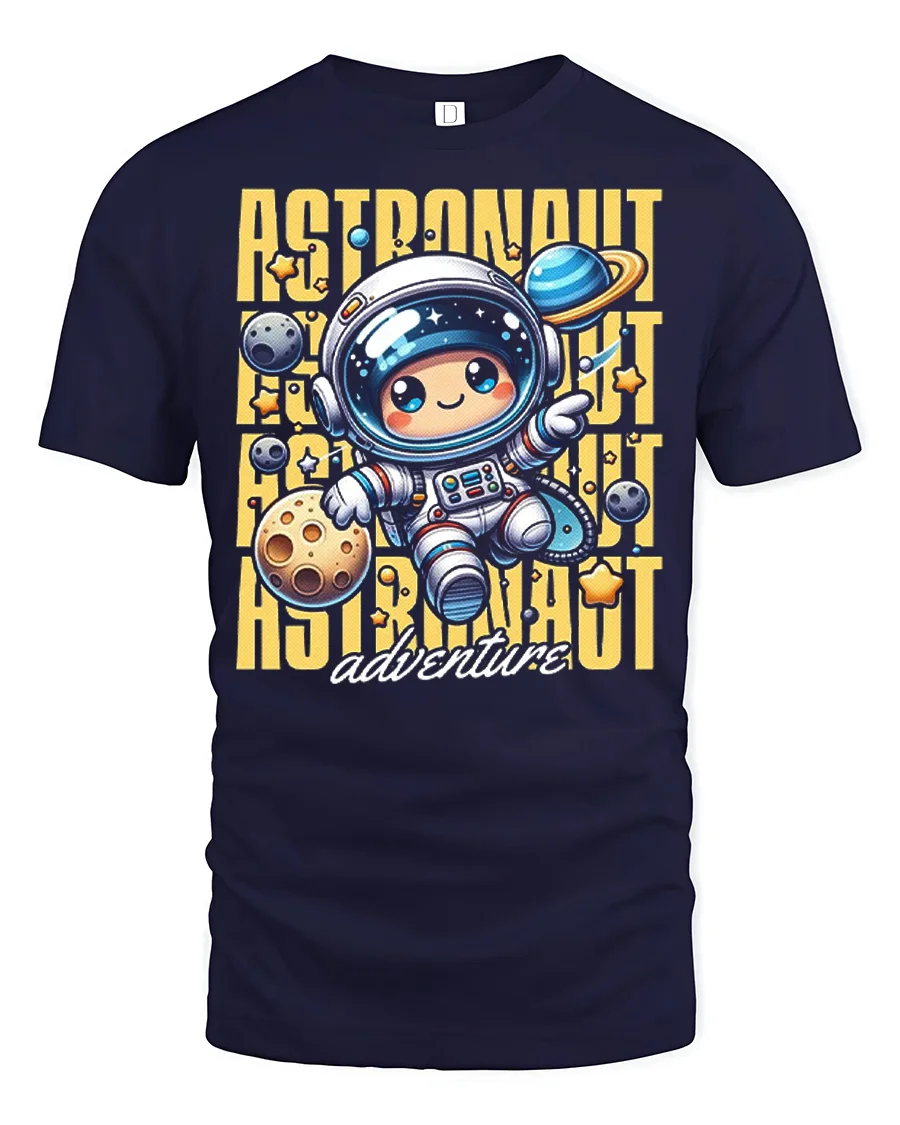 Cute Astronaut Adventure Space Graphic Tshirt Cosmic Fun brings a playful and imaginative design featuring an adorable astronaut exploring a colorful galaxy.