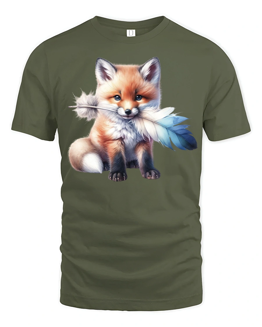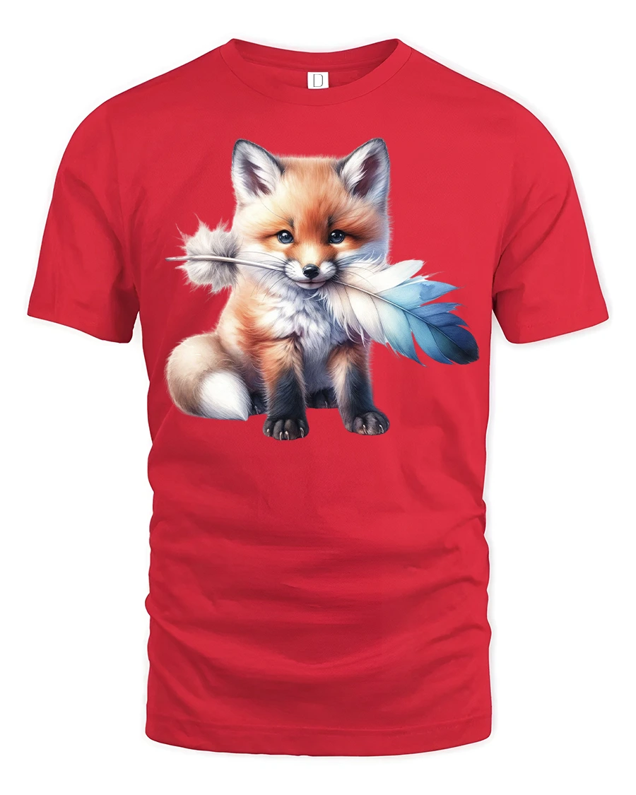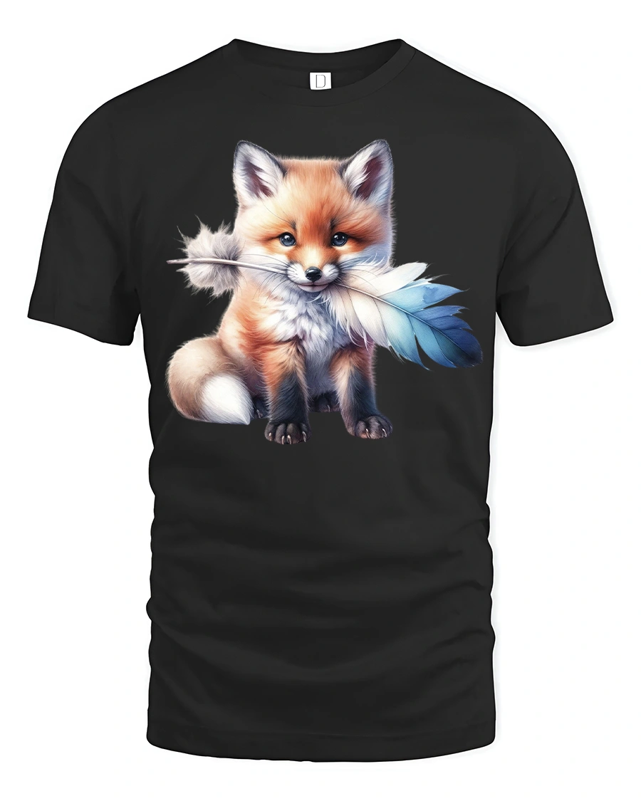 Cute Baby Fox Feather Dreamy Animal Art Graphic T Shirt captures a gentle moment filled with warmth imagination and charm.