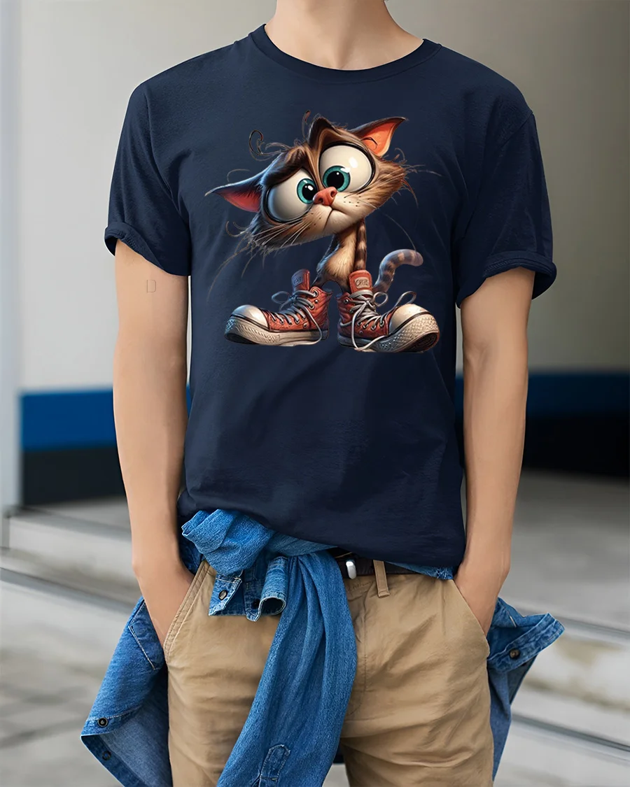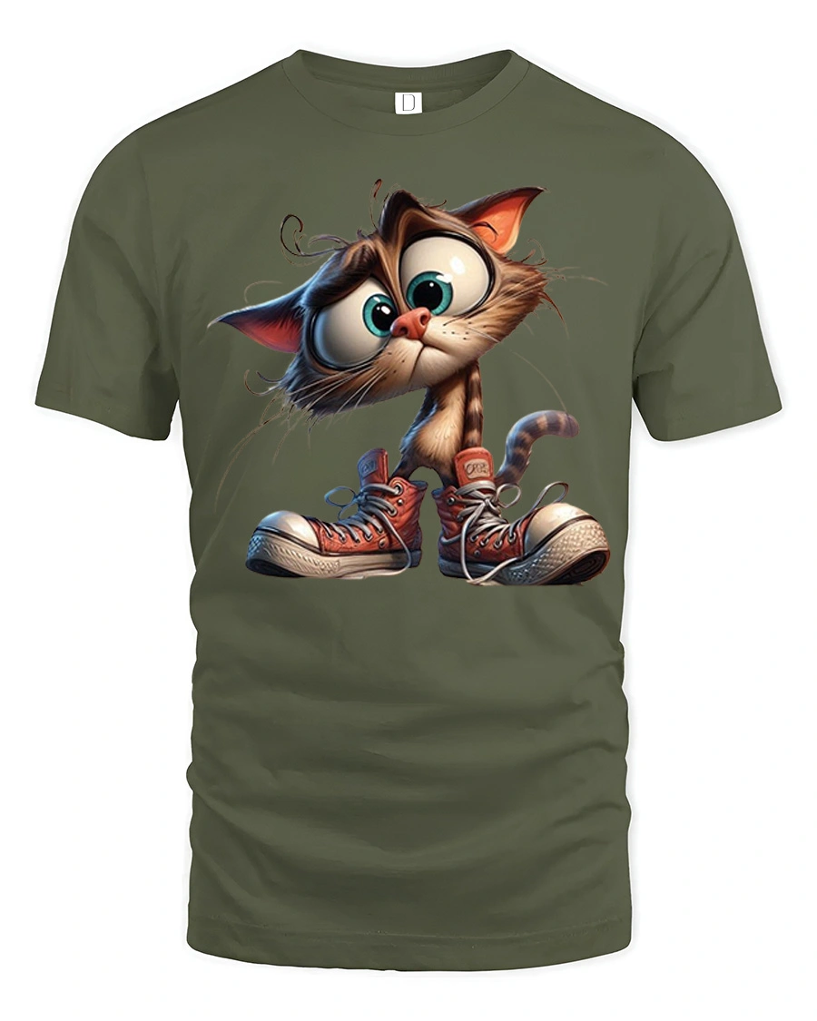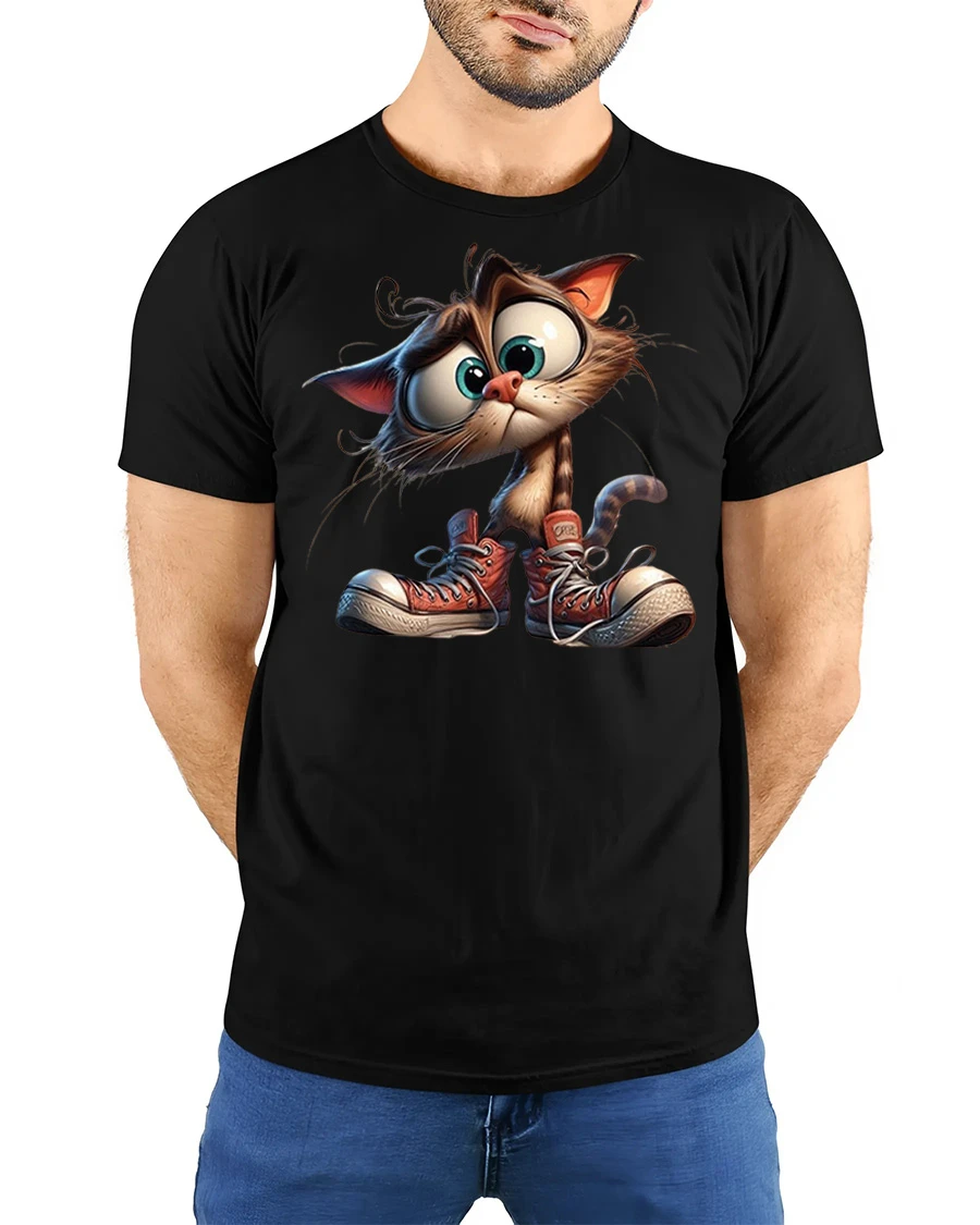 The Cute Big Eyes Cat Sneakers Graphic Tshirt Funny Cartoon Style brings adorable personality and playful charm into a fun and eye catching design.
