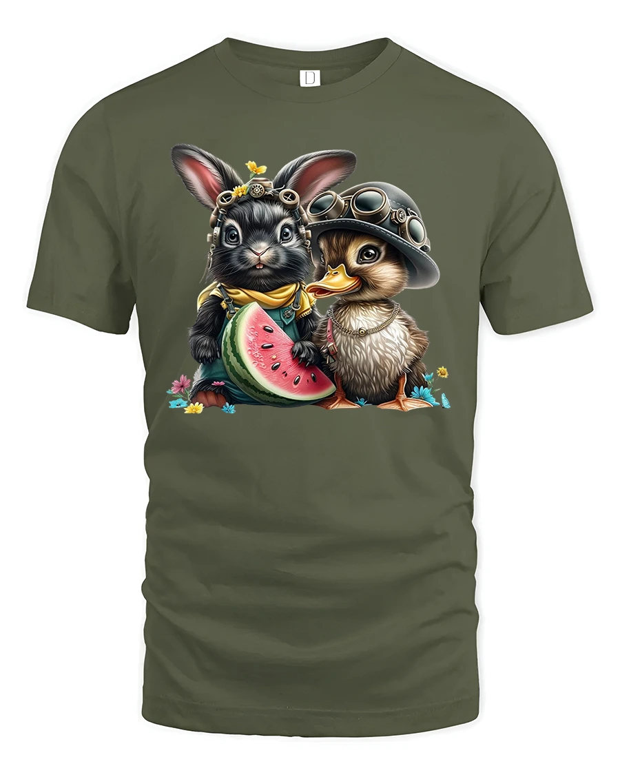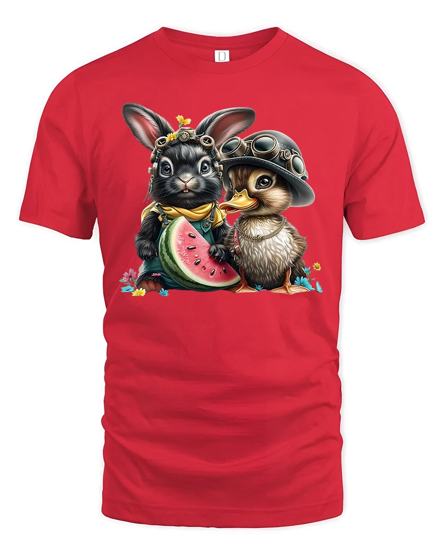 Cute Bunny and Duck Watermelon Friends T-Shirt is the perfect mix of adorable charm and summer fun.