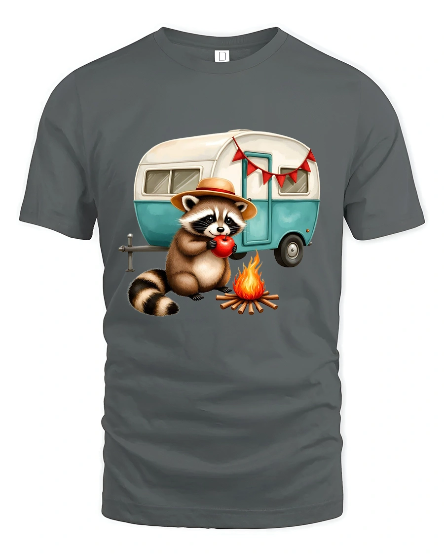Cute Camping Raccoon Camper Trailer Cozy Adventure Graphic Tee is perfect for fans of camping wildlife and cute illustrations.