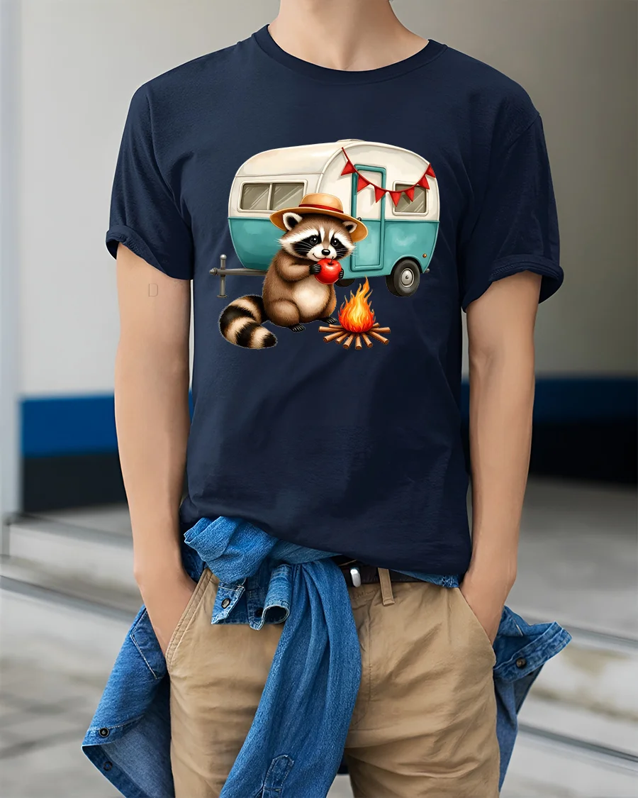 Cute Camping Raccoon Camper Trailer Cozy Adventure Graphic Tee is made from soft breathable fabric designed for everyday comfort.