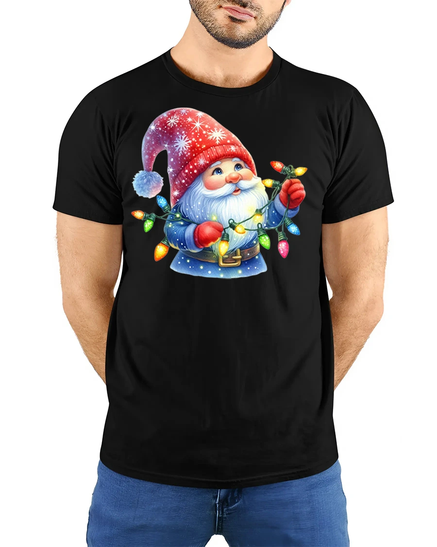 The Cute Christmas Gnome Tee Holding Colorful Holiday Lights Tshirt also makes a delightful gift for friends, coworkers, and family members who enjoy unique and cheerful Christmas apparel. Easy to pair with jeans or cozy winter layers, it’s a must-have addition for anyone looking to spread joy and festive charm all season long.