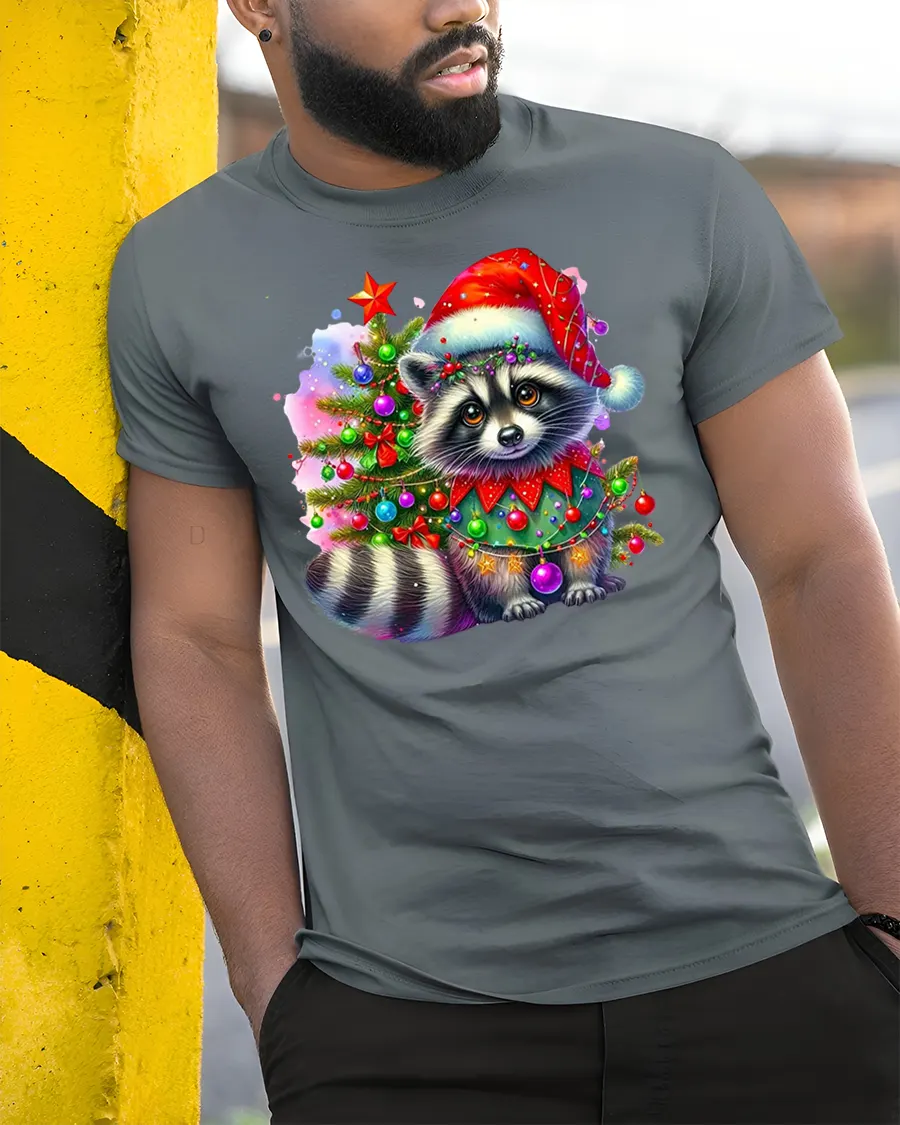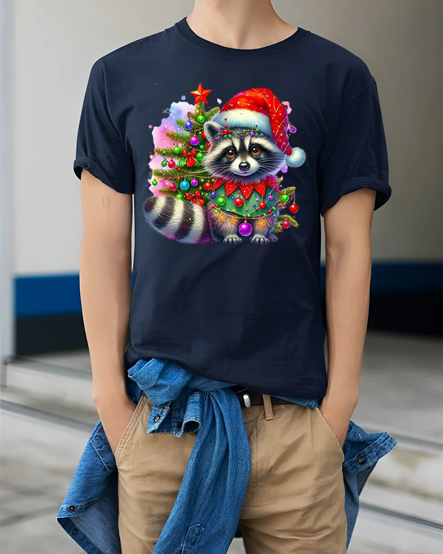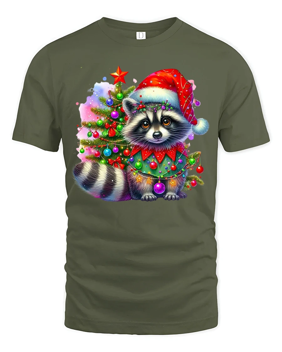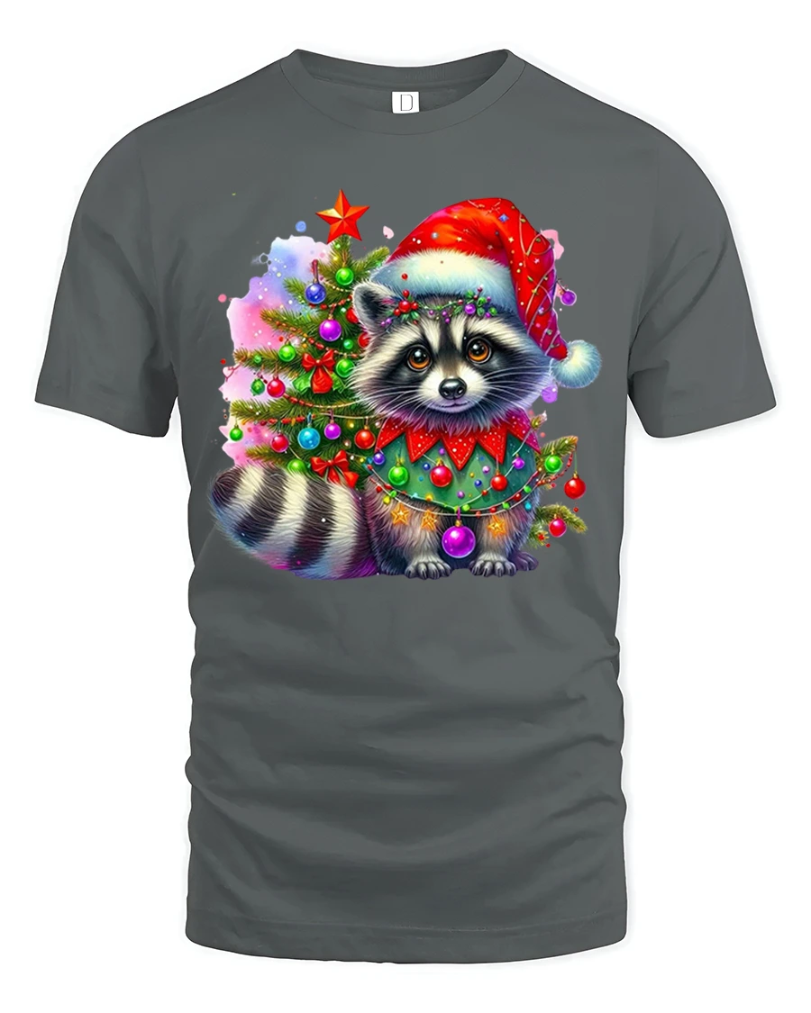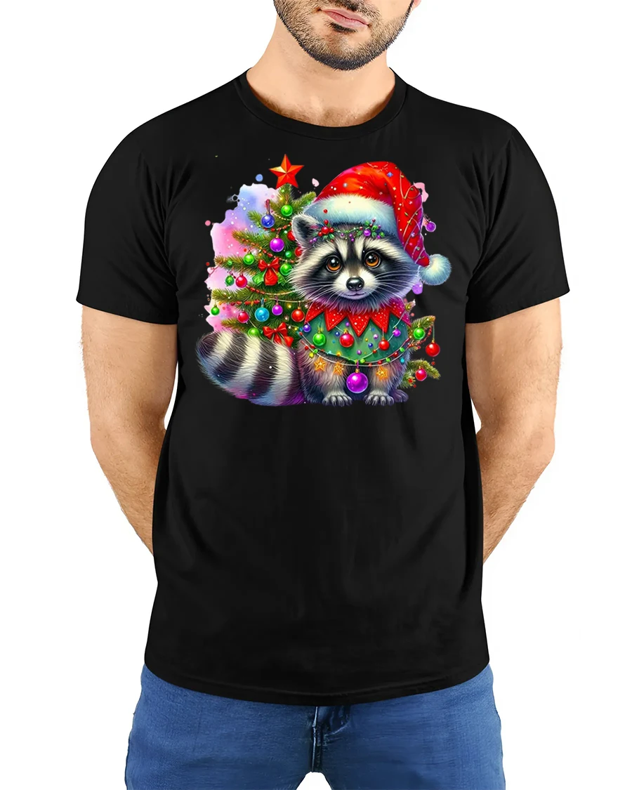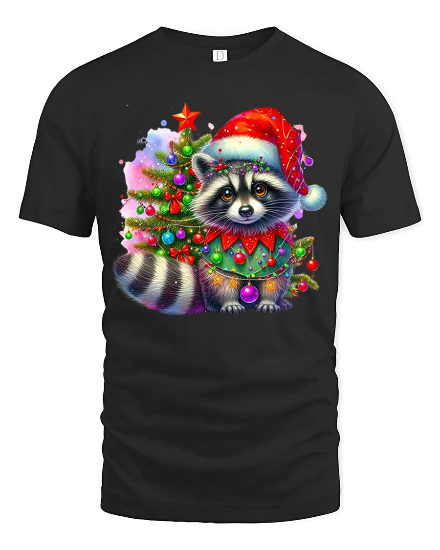 The Cute Christmas Raccoon Tee Santa Holiday Tree Lights Tshirt is also a wonderful gift idea for friends, family, or anyone who loves adorable critters and festive clothing. Spread holiday cheer and playful style with this eye-catching Christmas tee—perfect for creating smiles wherever you go.