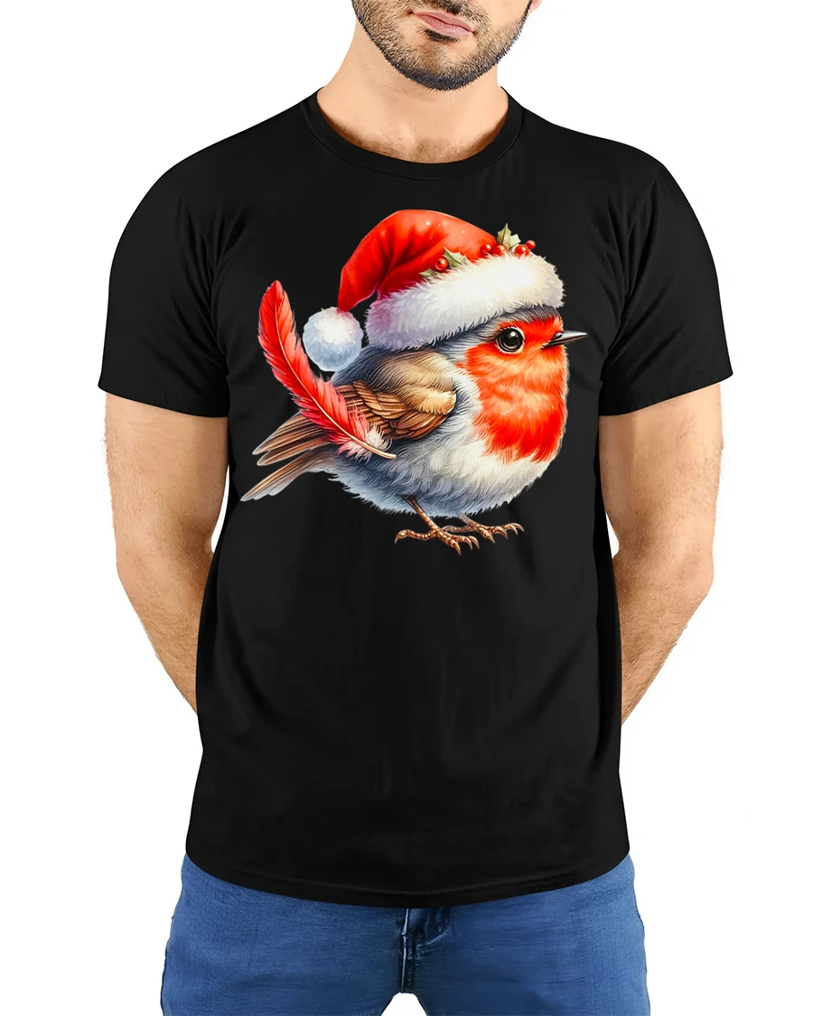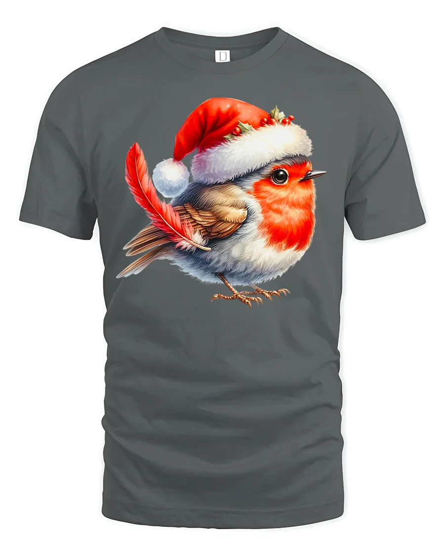 Cute Christmas Robin in Santa Hat Holiday Graphic Tee brings warm winter charm and festive cheer to your holiday wardrobe. Featuring an adorable robin wearing a fluffy Santa hat, this beautifully illustrated design captures the cozy and joyful feeling of the Christmas season. The vibrant red feathers, soft textures, and bright seasonal details make this artwork truly eye-catching and heartwarming.