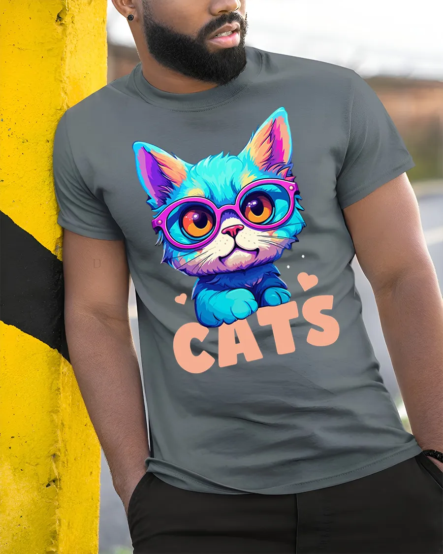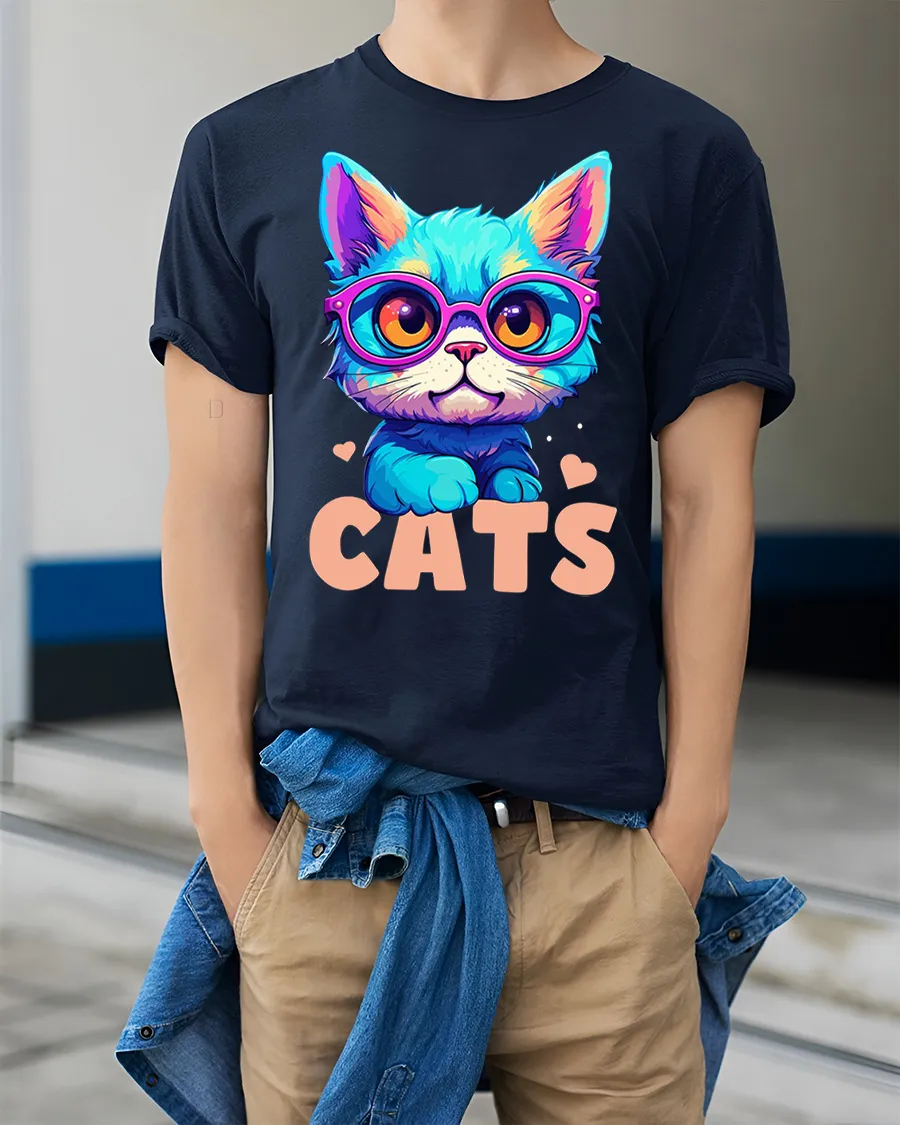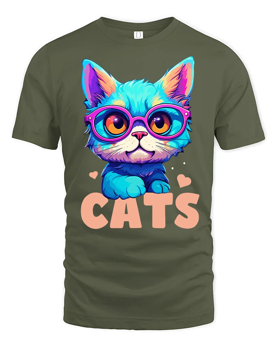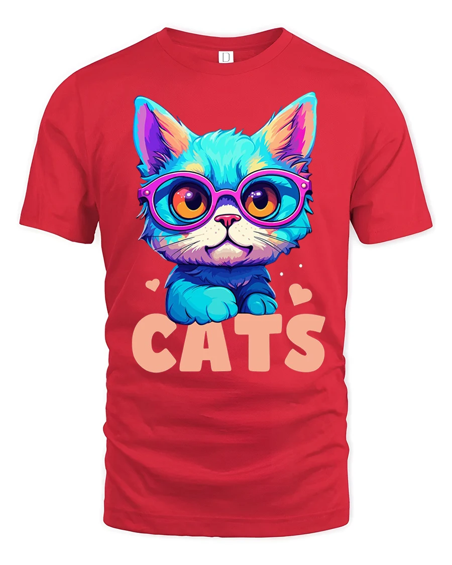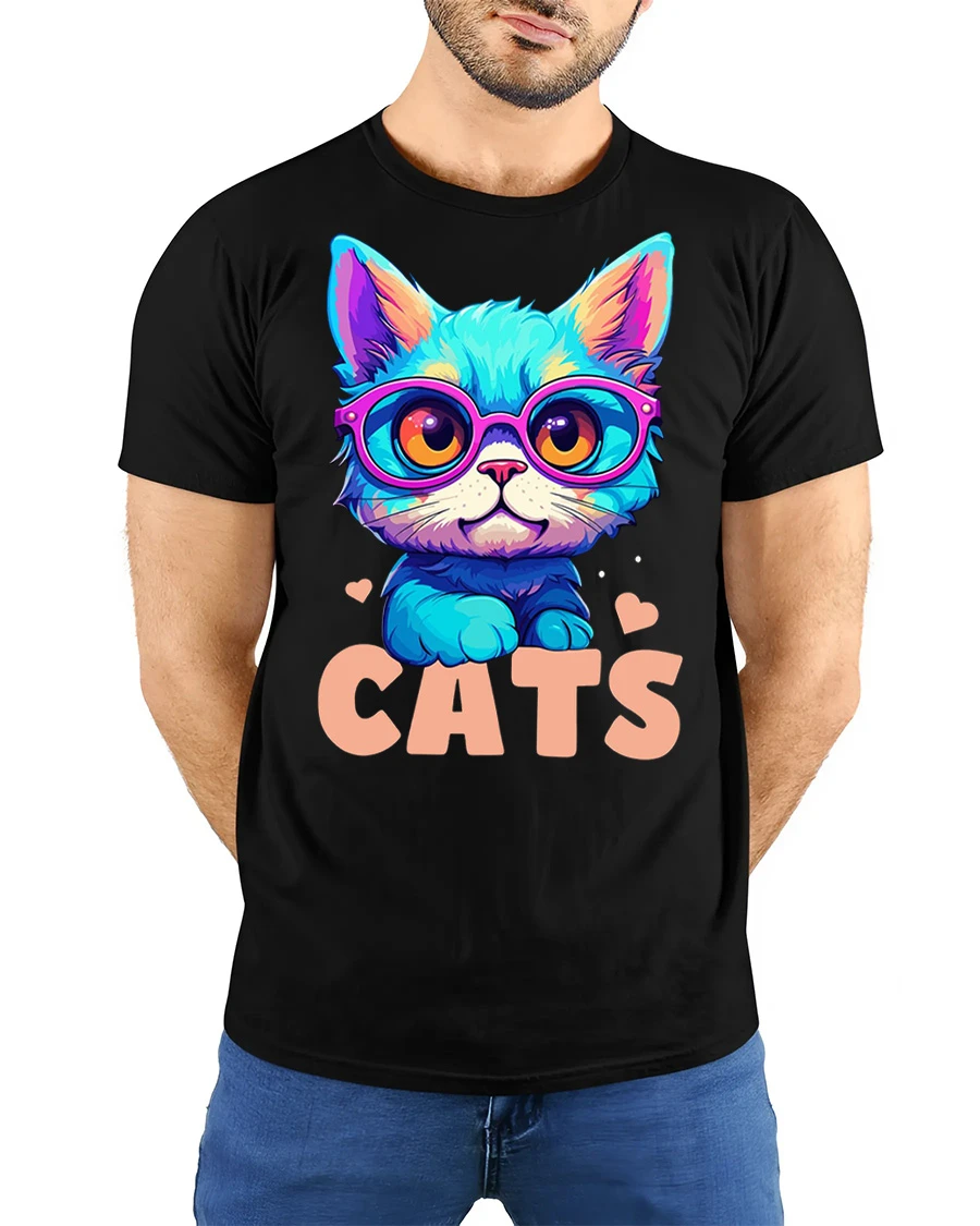Cute Colorful Cats With Glasses Cartoon Graphic T Shirt brings a fun and charming vibe to everyday fashion.