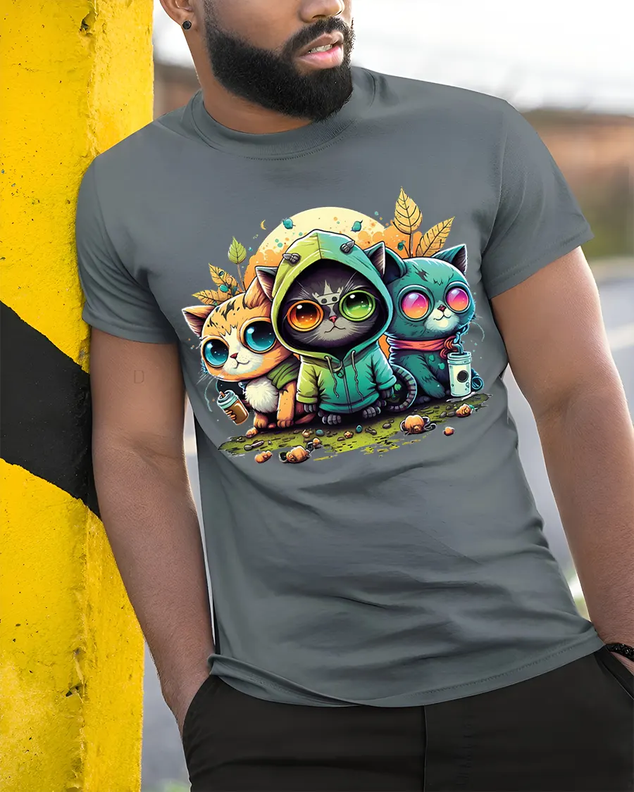 Cute Cool Cats Hoodie Style Graphic T Shirt brings playful charm and modern street style together in one eye catching design.