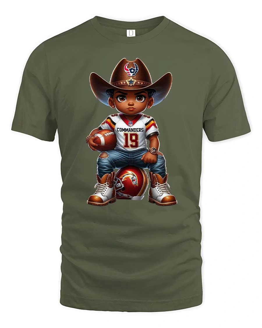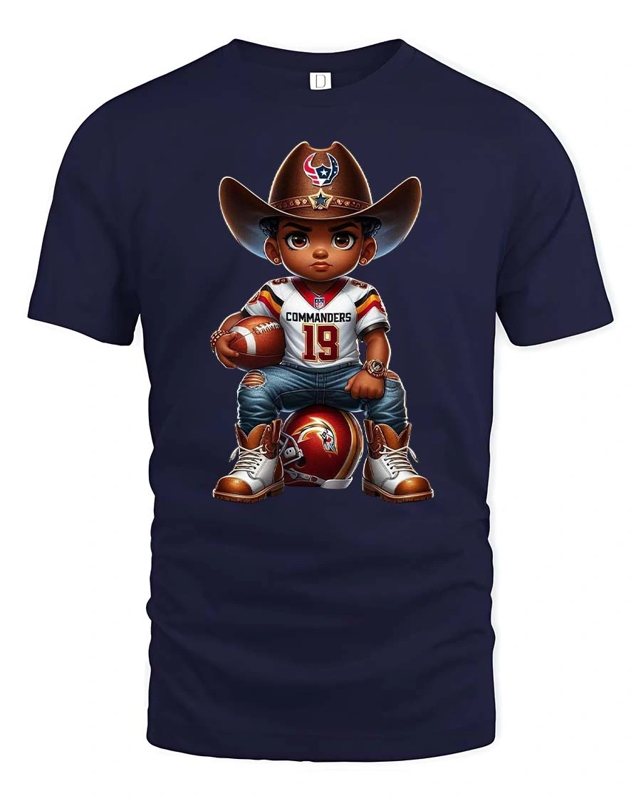 Cute Cowboy Football Kid Tee with Fun Game Day Cartoon Art is the perfect blend of Western charm and sporty energy. Featuring a determined little cowboy holding a football while sitting confidently on a helmet, this tee captures the excitement of game day in a playful and stylish way. The detailed artwork, bold colors, and adorable character design make it a standout piece for anyone who loves football, cowboys, or unique cartoon-style tees.