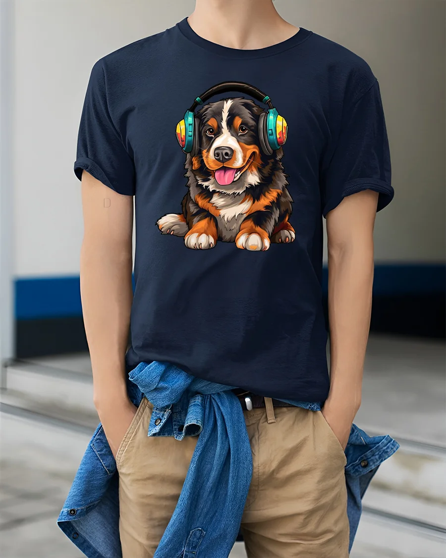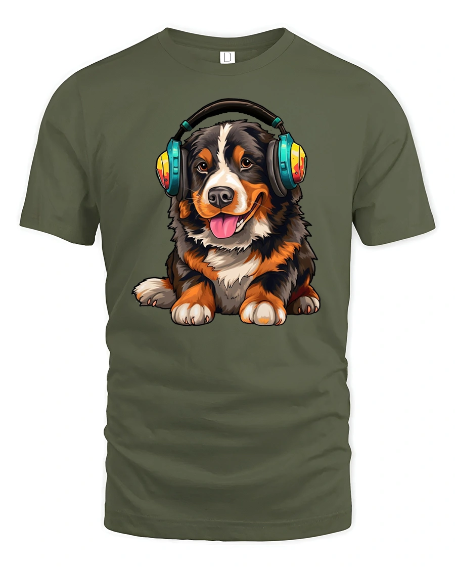 Cute Dog Wearing Headphones Music Lover Cartoon Art T Shirt is ideal for dog lovers music fans and anyone who enjoys cheerful graphic designs.