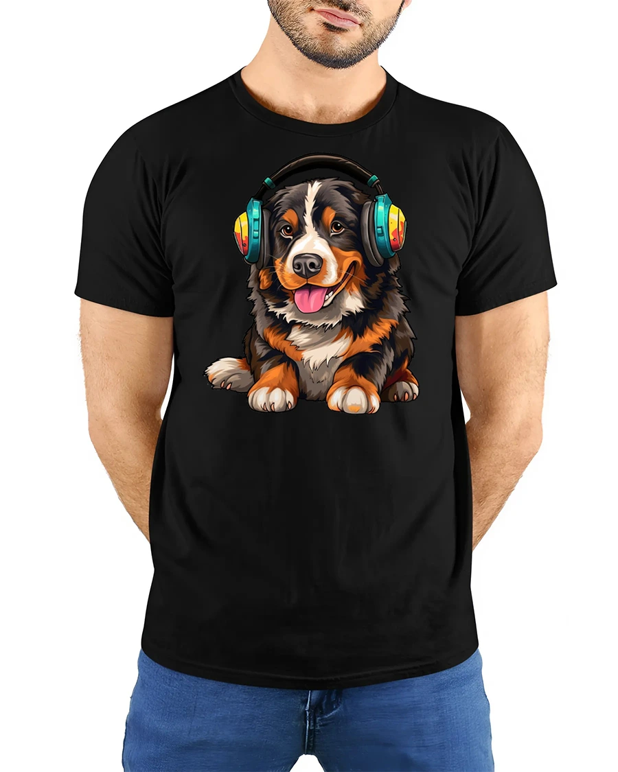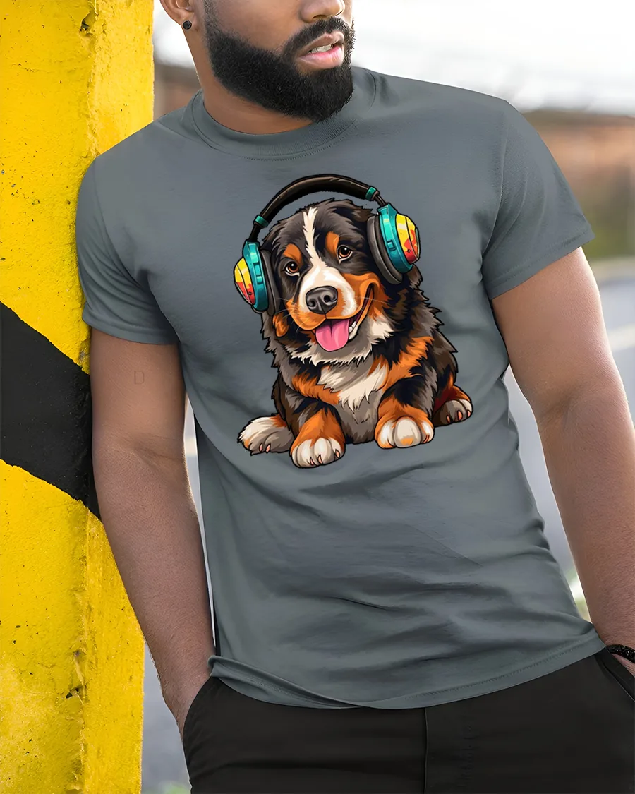 Cute Dog Wearing Headphones Music Lover Cartoon Art T Shirt brings together adorable charm and a relaxed music vibe.