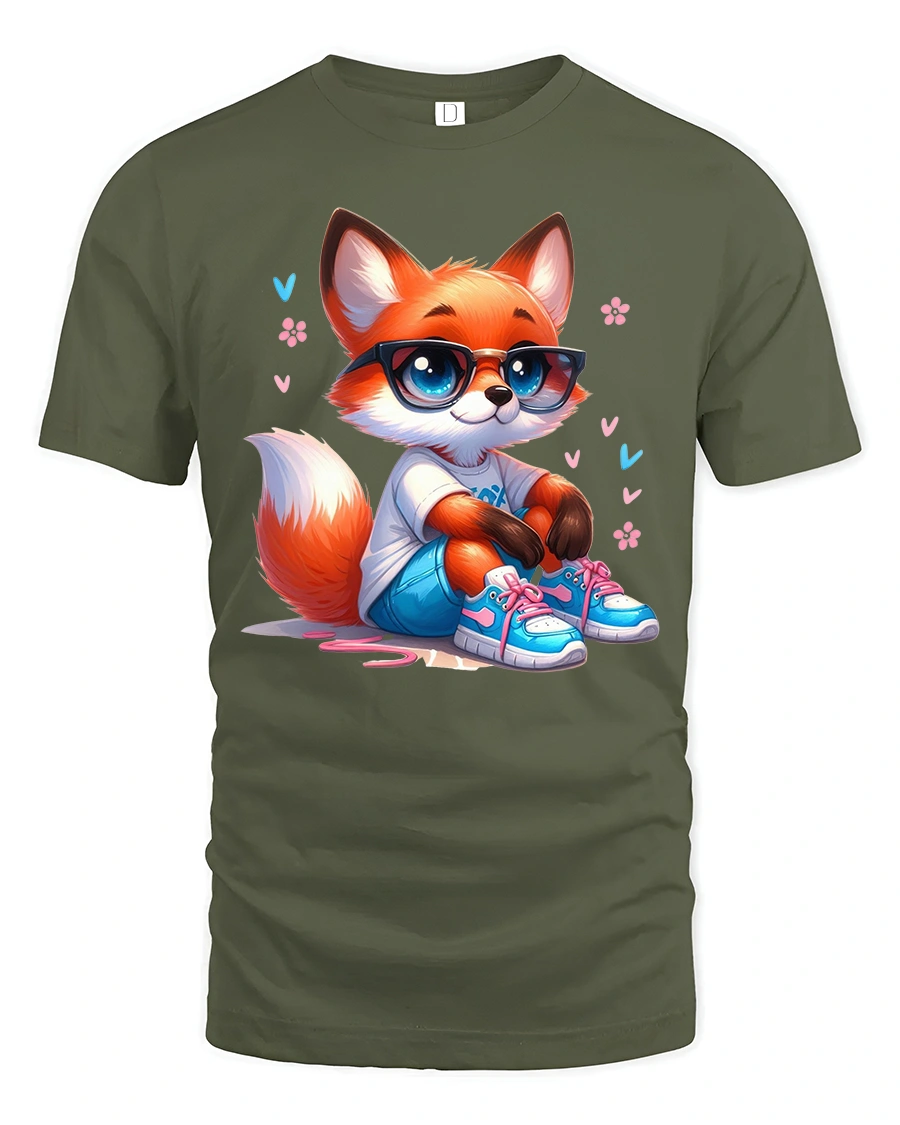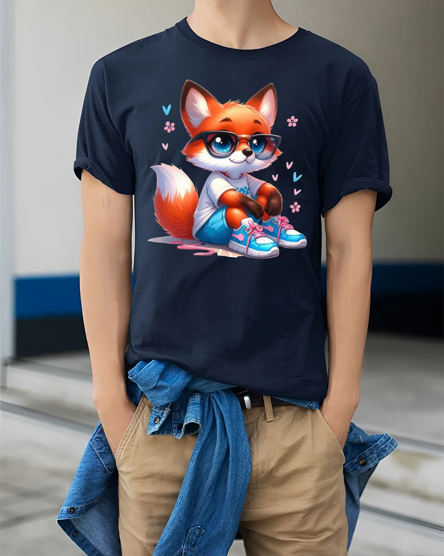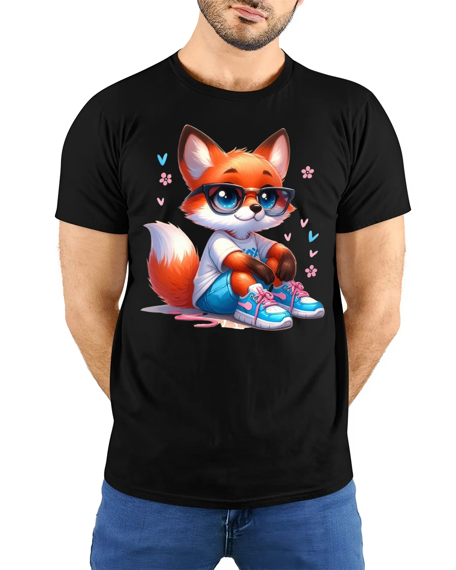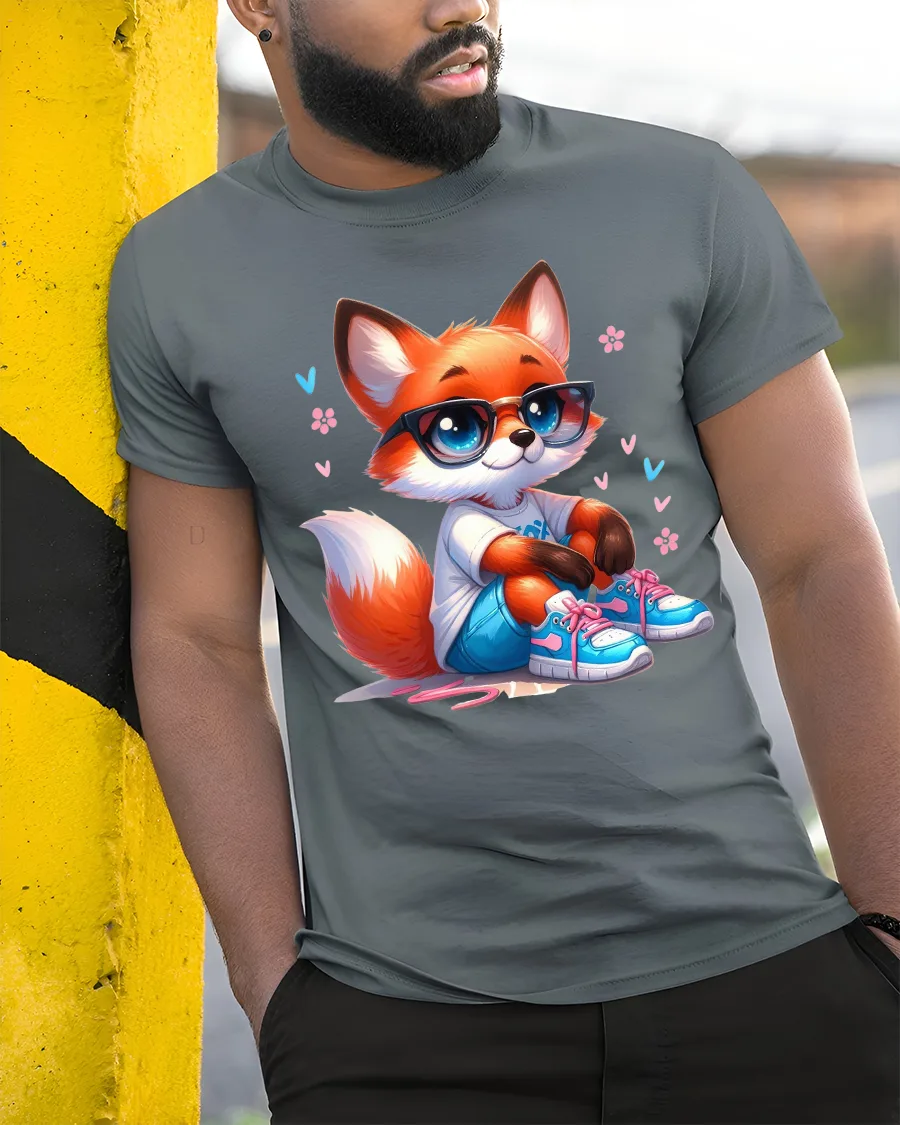 Featuring a charming fox wearing glasses, sneakers, and casual clothes, this tee mixes cute style with modern streetwear flair.