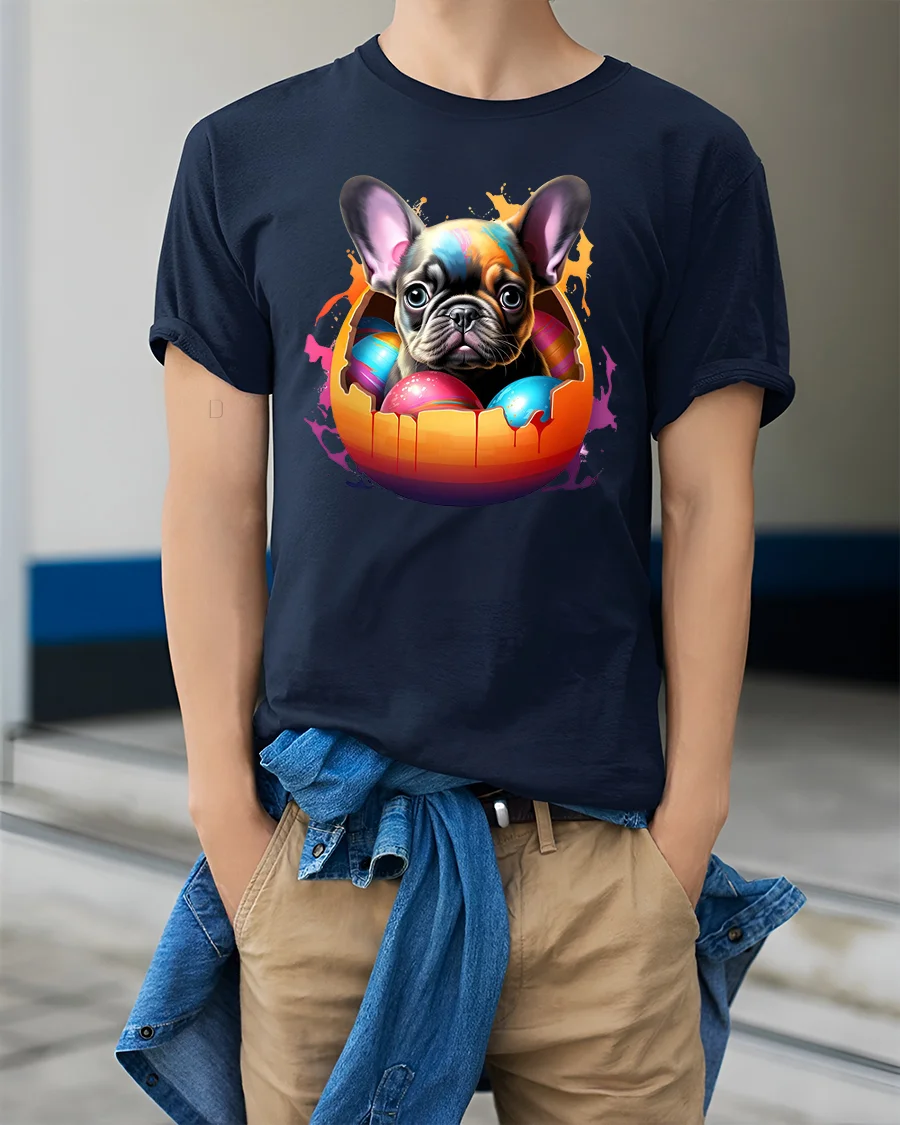 Cute French Bulldog In Egg Funny Puppy Art T-Shirt is the perfect blend of charm, color, and humor for dog lovers everywhere. Featuring an adorable French Bulldog peeking out of a cracked, colorful egg, this playful design adds a fun twist to your wardrobe. It’s great for Easter, spring celebrations, or anyone who can’t resist the cuteness of a Frenchie pup.