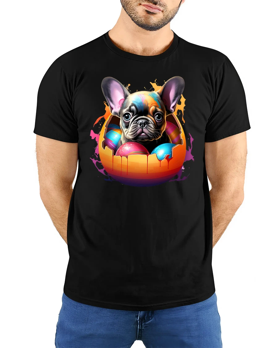 Made from soft, breathable cotton, this t-shirt feels as good as it looks. The high-quality print captures every detail of the puppy’s expressive face and bright eggshell hues, staying vibrant wash after wash. Whether you’re relaxing at home, walking your dog, or gifting it to a fellow Frenchie fan, this shirt brings instant smiles.