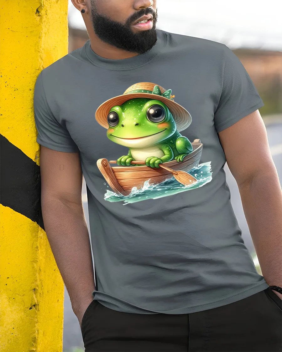 Give your outfit a fun and carefree vibe with the Cute Frog Rowing Boat Funny Nature Lover T-Shirt.
