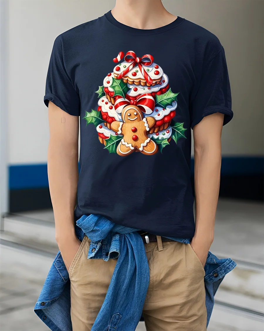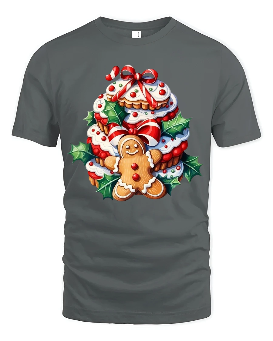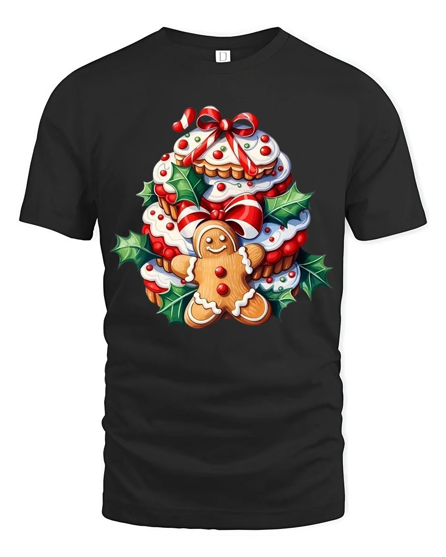 Celebrate the sweetness of the season with this festive gingerbread tshirt that brings comfort, fun and holiday spirit to every occasion. Whether you’re decorating cookies, wrapping presents or joining family festivities, this tee adds a cheerful and whimsical touch to your holiday style.
