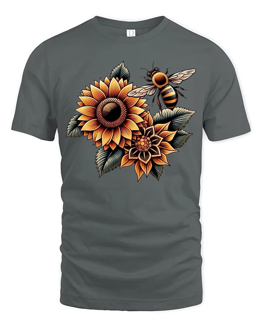 The Cute Happy Bumblebee Smiling Cartoon Art Graphic Tee brings instant joy with its adorable and playful design.