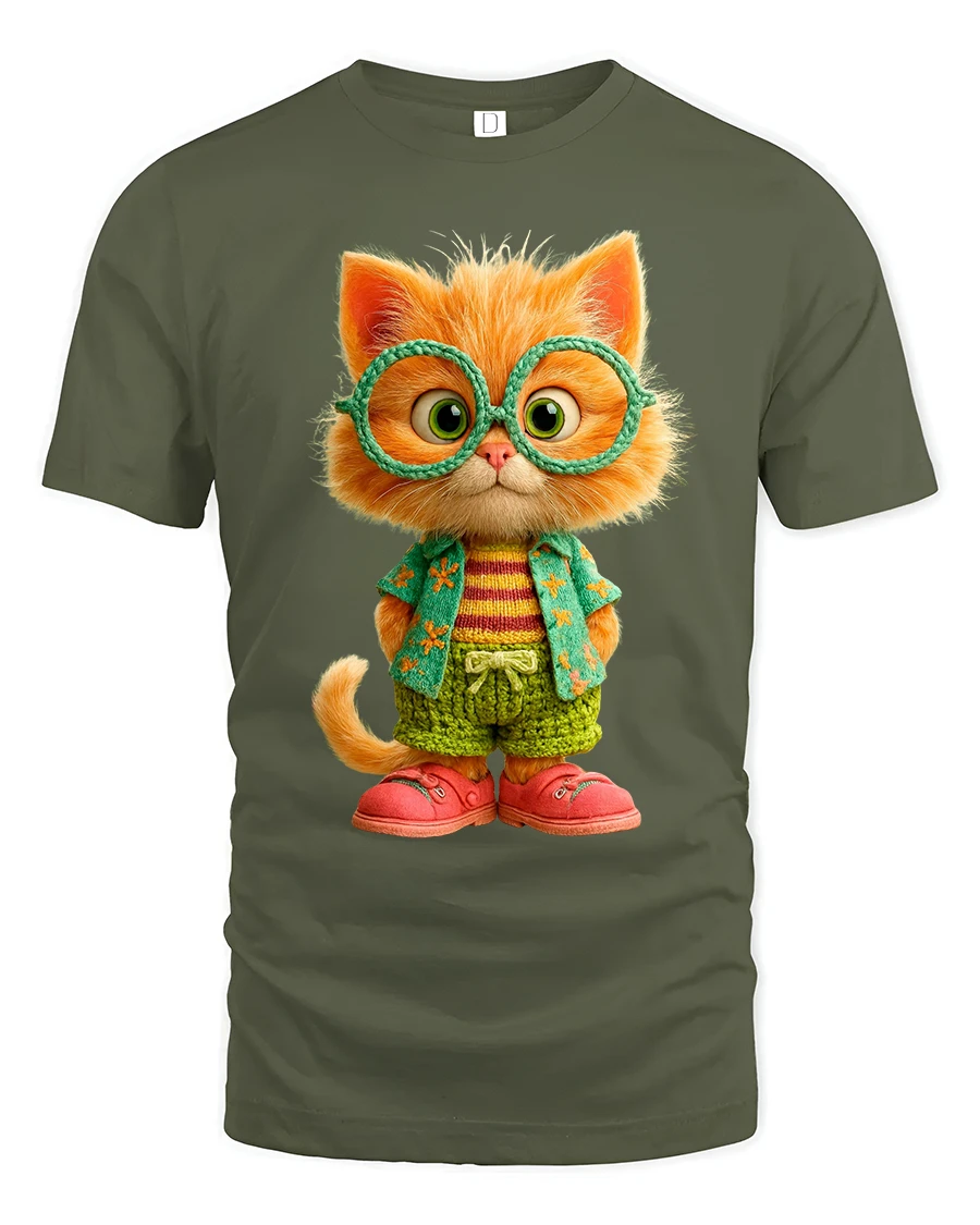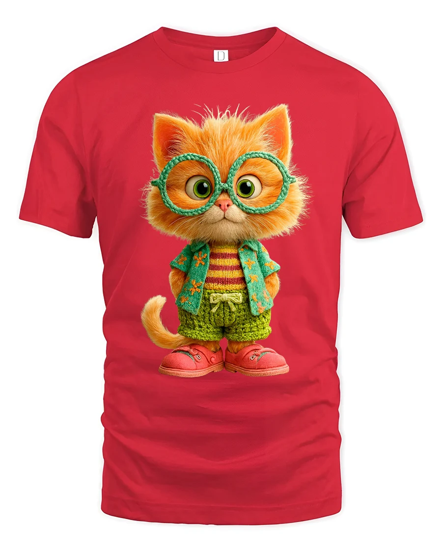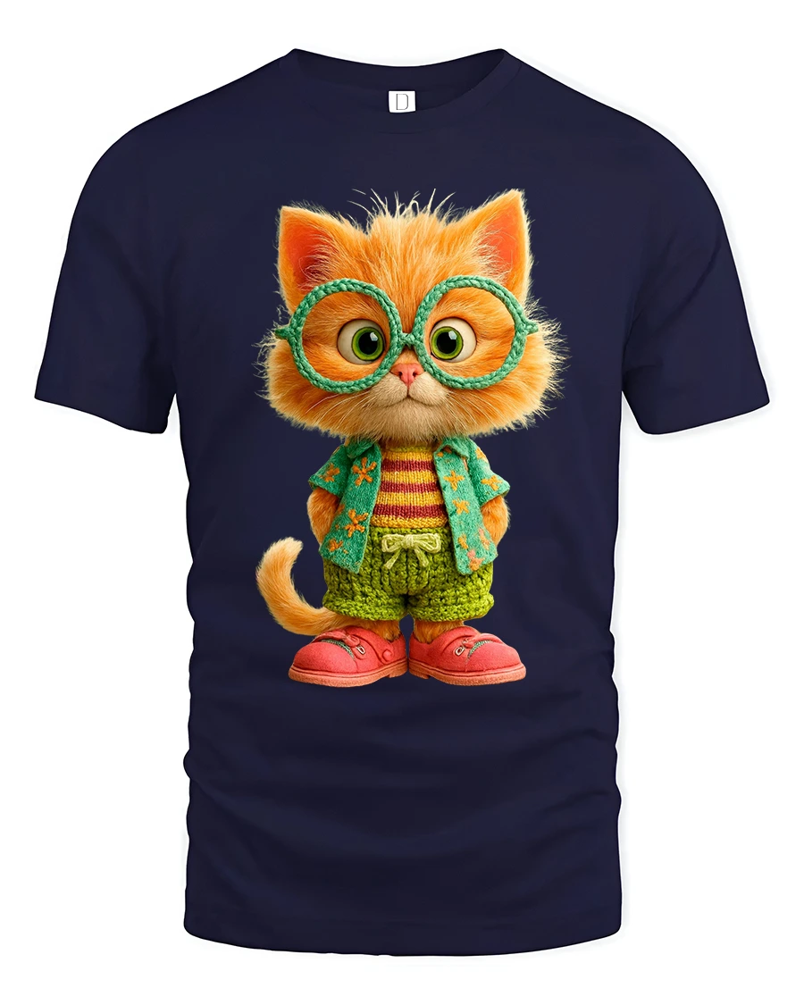 Cute Kitten Glasses Tee with Colorful Outfit and Adorable Art brings irresistible charm and playful style to any wardrobe. Featuring a fluffy orange kitten dressed in bright crochet-style clothing and oversized round glasses, this delightful design captures a blend of sweet innocence and quirky personality. The vibrant colors and detailed artwork make this tee stand out in a fun and eye-catching way that cat lovers adore.