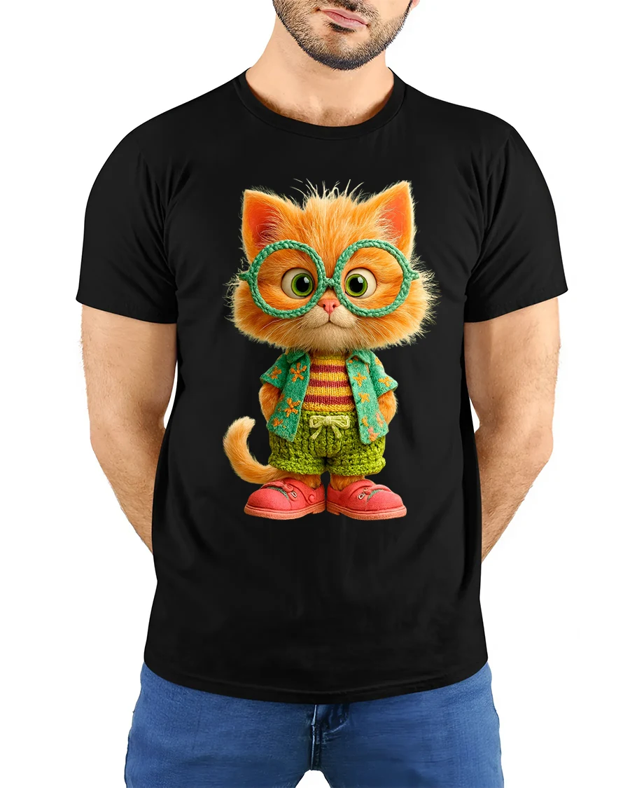 Wearing the Cute Kitten Glasses Tee with Colorful Outfit and Adorable Art adds instant joy to your day. Whether you love expressive animal illustrations or enjoy wearing unique and cheerful designs, this tee delivers warmth and whimsy with every look. The cute expression, big sparkling eyes, and cozy outfit create a heartwarming visual that appeals to all ages and makes the tee an uplifting style choice.