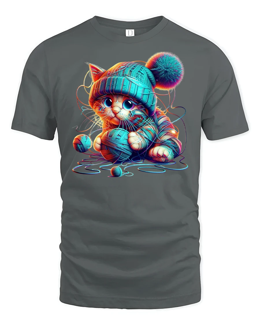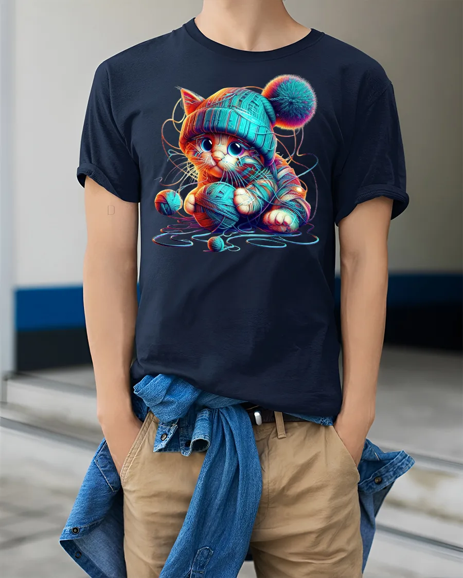 The Cute Knitted Cat with Yarn Ball Graphic T-Shirt is also a thoughtful gift idea for animal lovers, pet parents, and fans of kawaii or cartoon-style fashion. Pair it with jeans or joggers for a casual, cute look that always gets noticed. Stay cozy, stay stylish, and let this adorable kitten bring smiles everywhere you go.