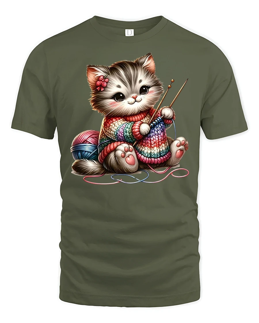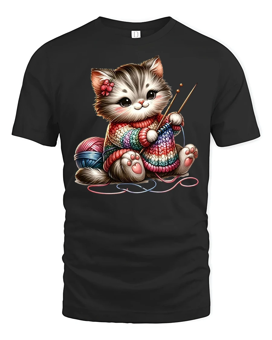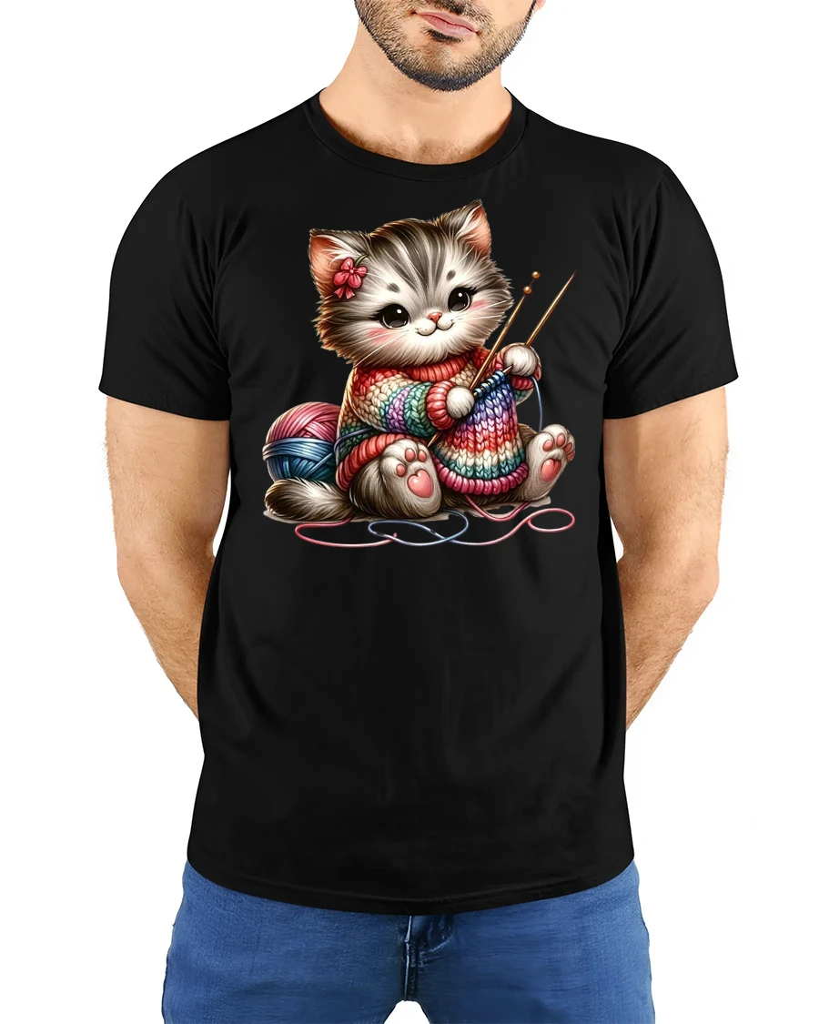 It’s playful, cozy, and full of charm — the ultimate tee for anyone who loves cats, knitting, or creative hobbies.
