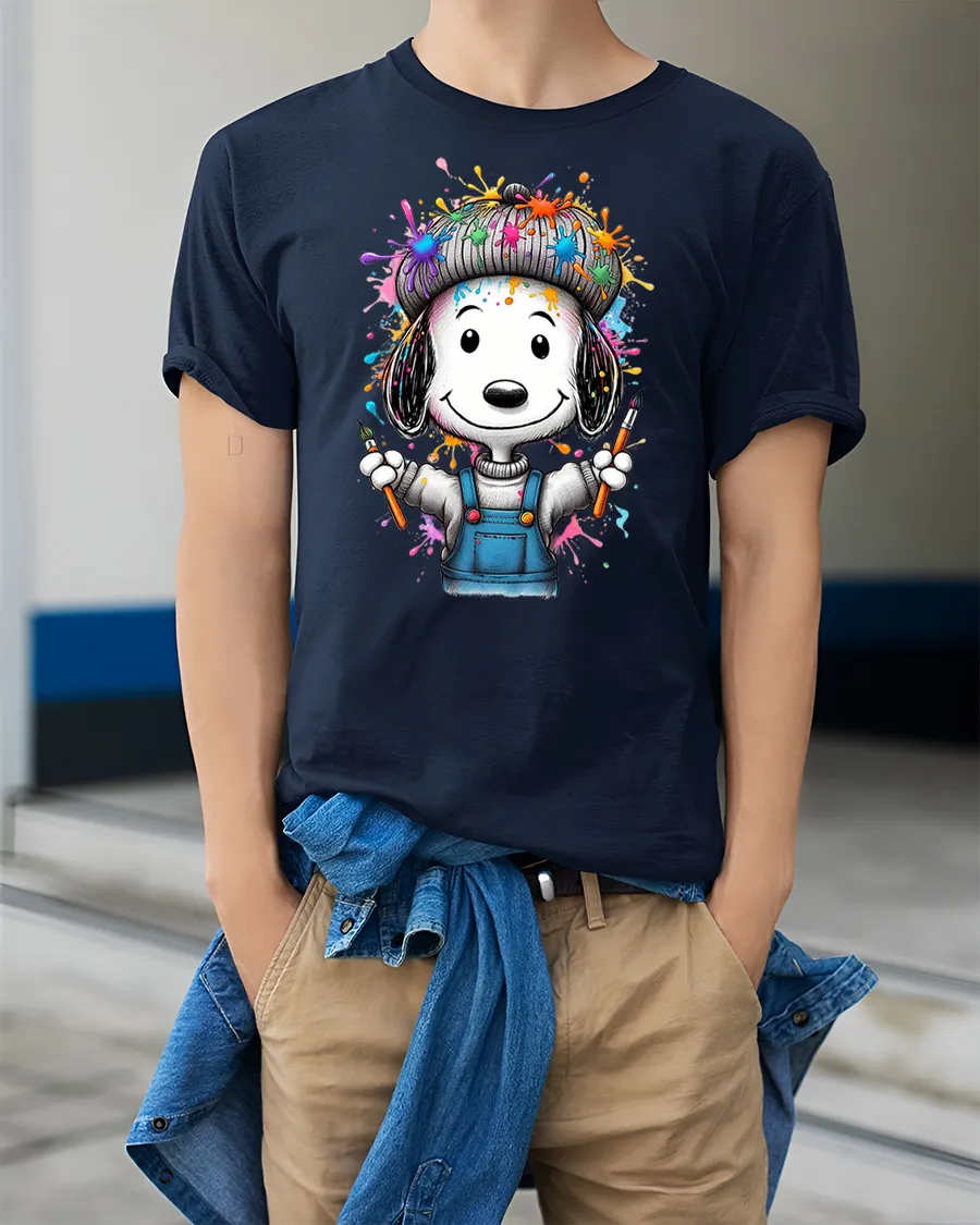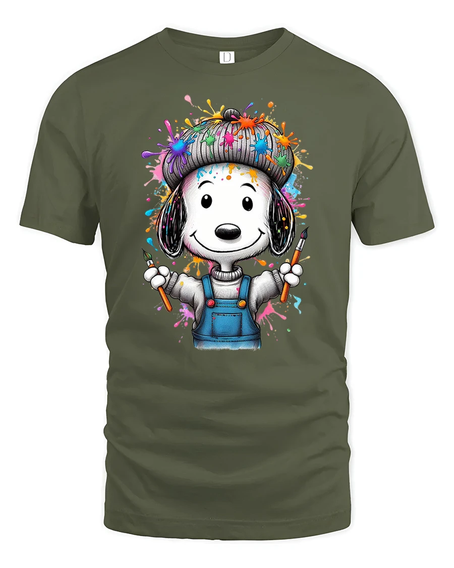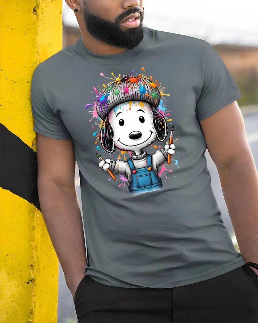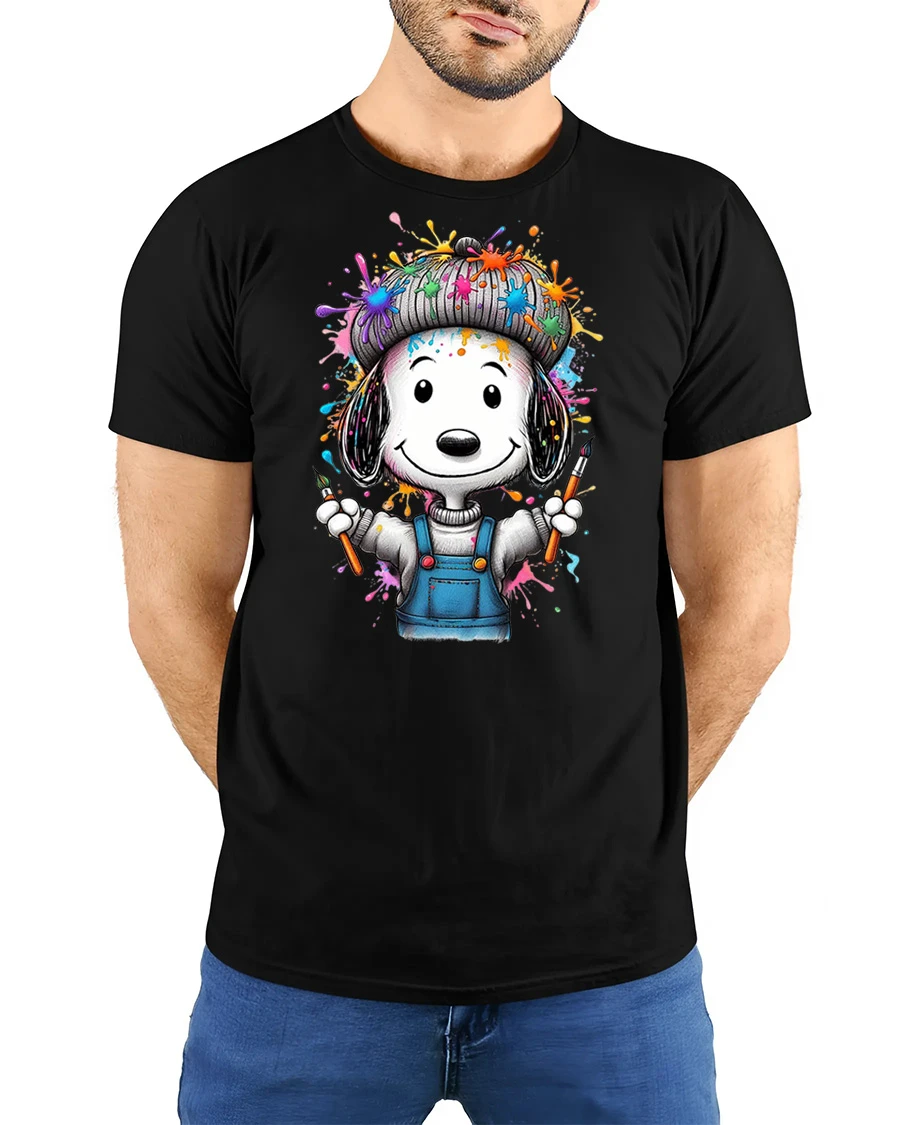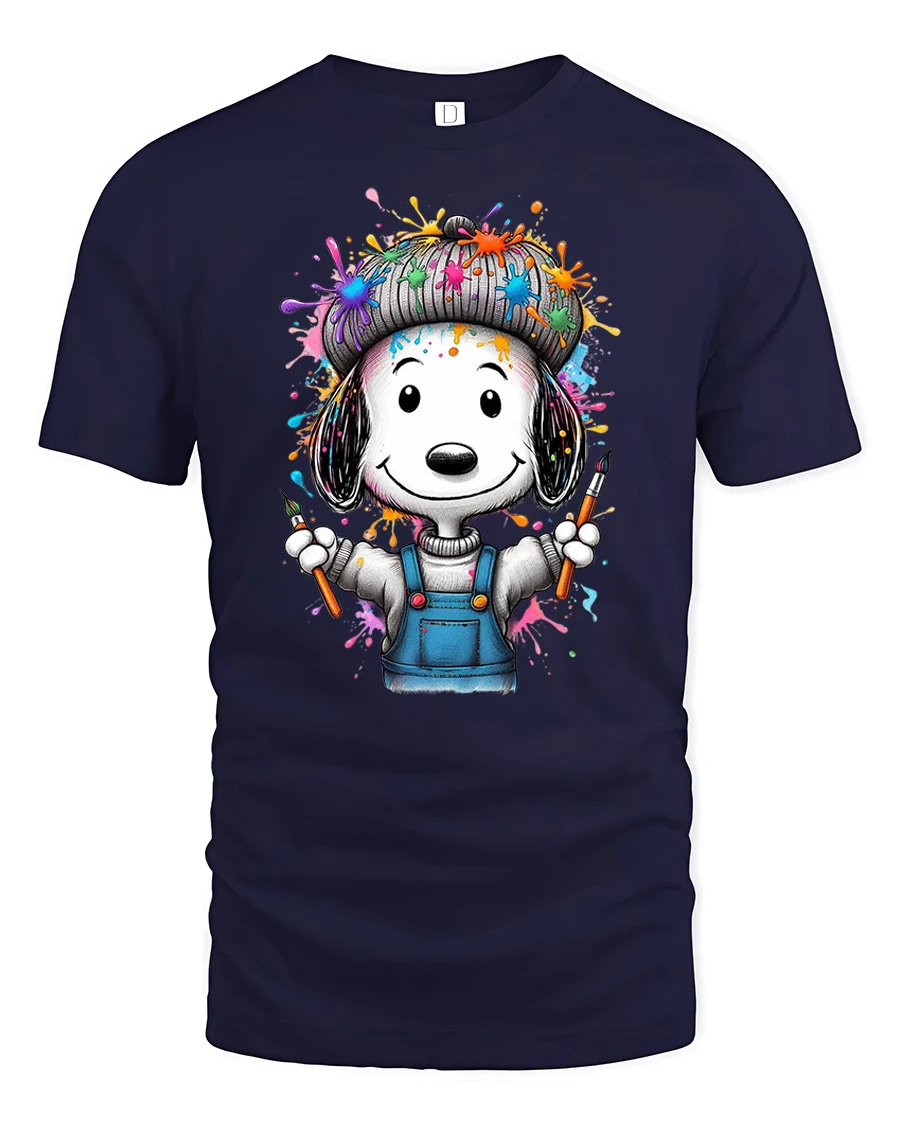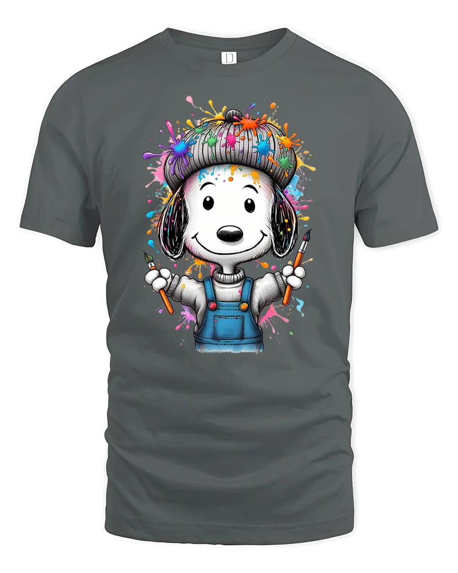 Cute Painter Dog Cartoon Splash Art Graphic T Shirt brings playful charm and colorful creativity into your everyday style.