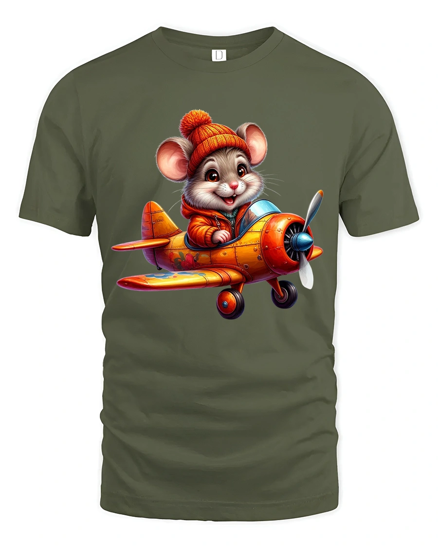 Cute Pilot Mouse Airplane Adventure Illustration Graphic Tshirt is crafted from soft breathable fabric designed for everyday comfort.