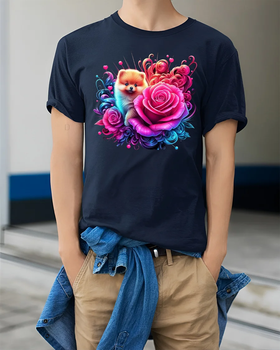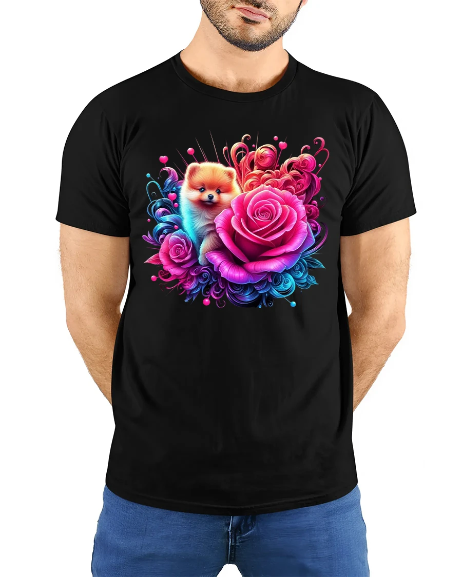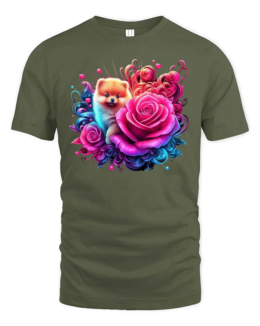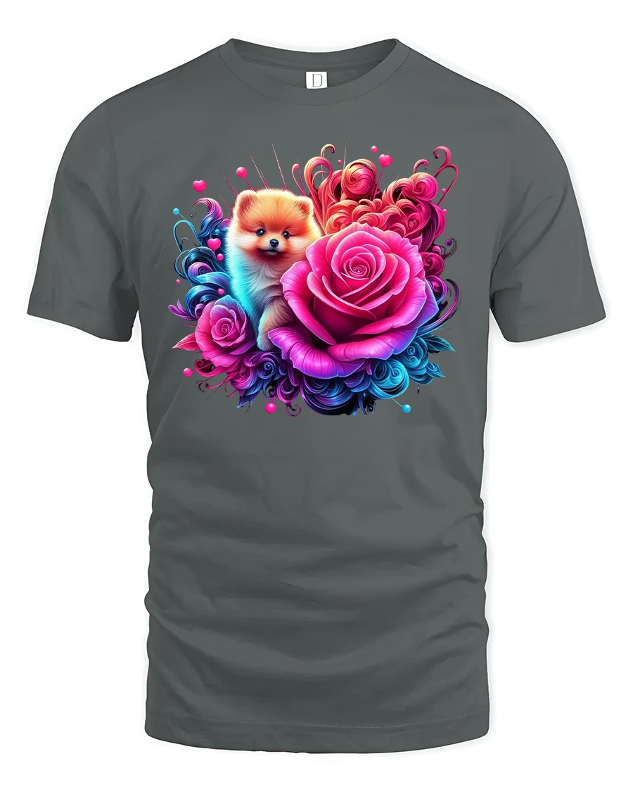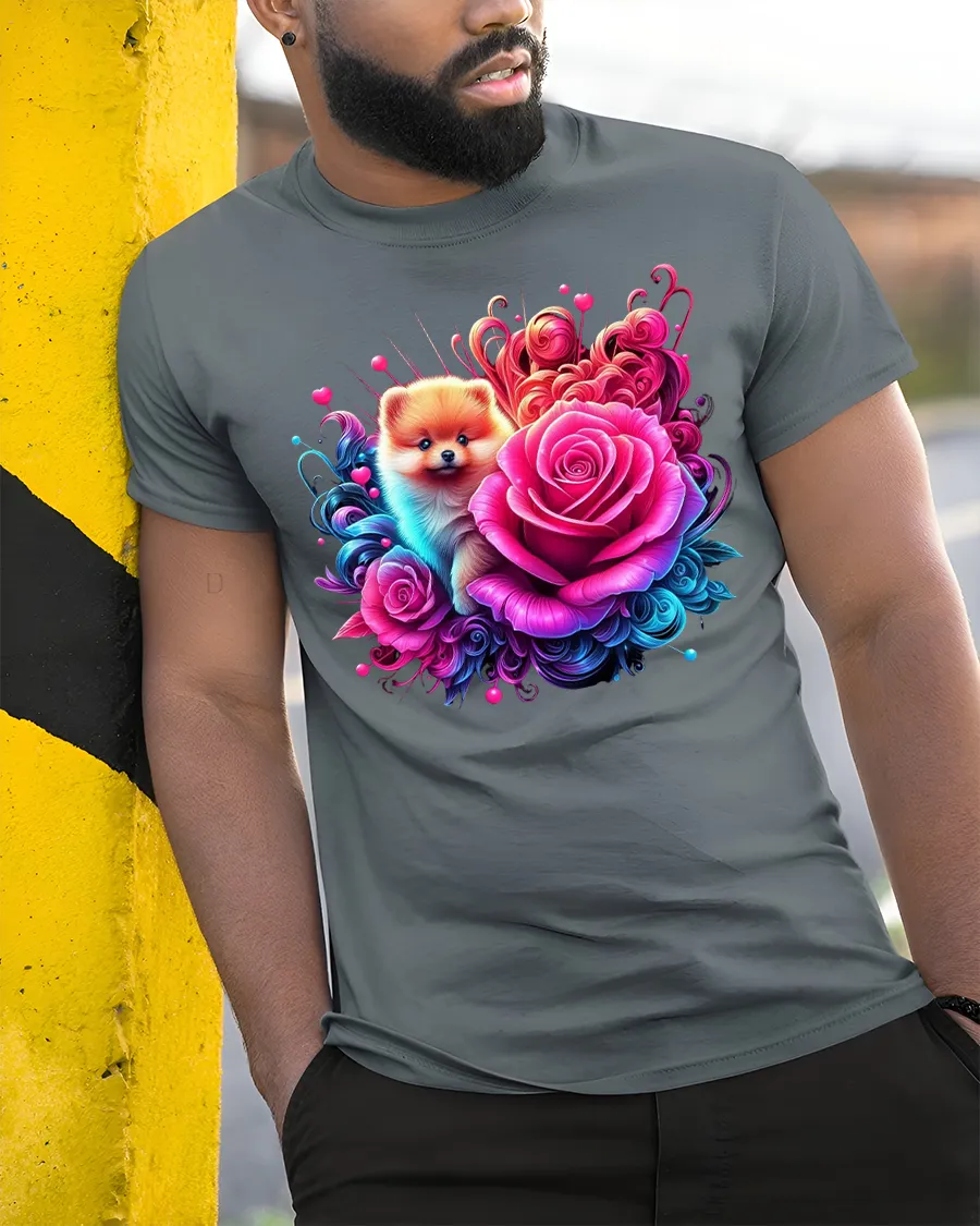 Whether you’re heading out for a casual day, relaxing at home, or showing off your love for pets, this floral Pomeranian t-shirt adds joy and style to any outfit. A must-have for animal lovers and a thoughtful gift for anyone who can’t resist a cute face and a bouquet of roses.