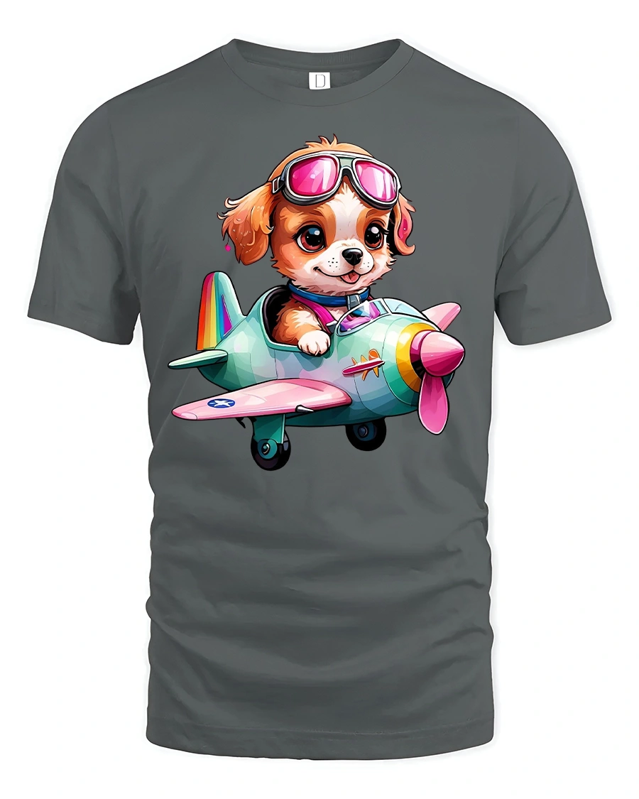 Cute Puppy Pilot Tee with Adorable Cartoon Airplane Art