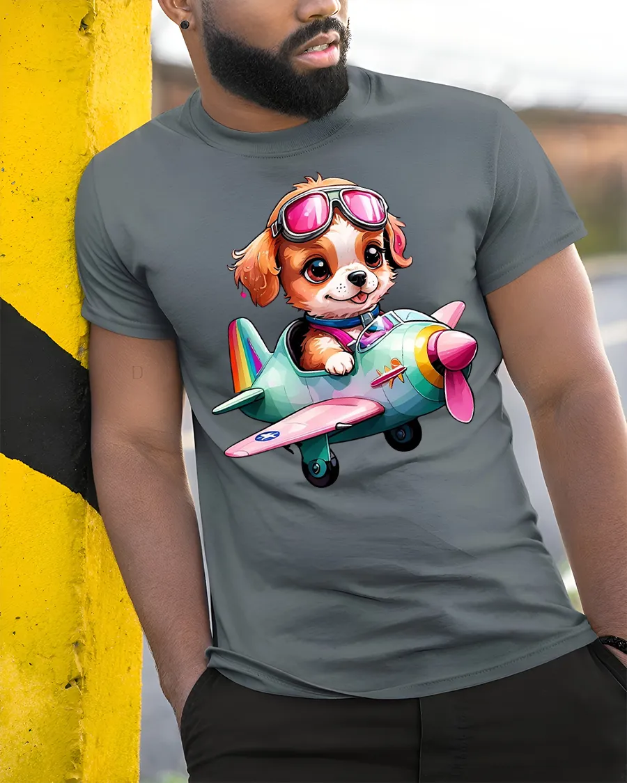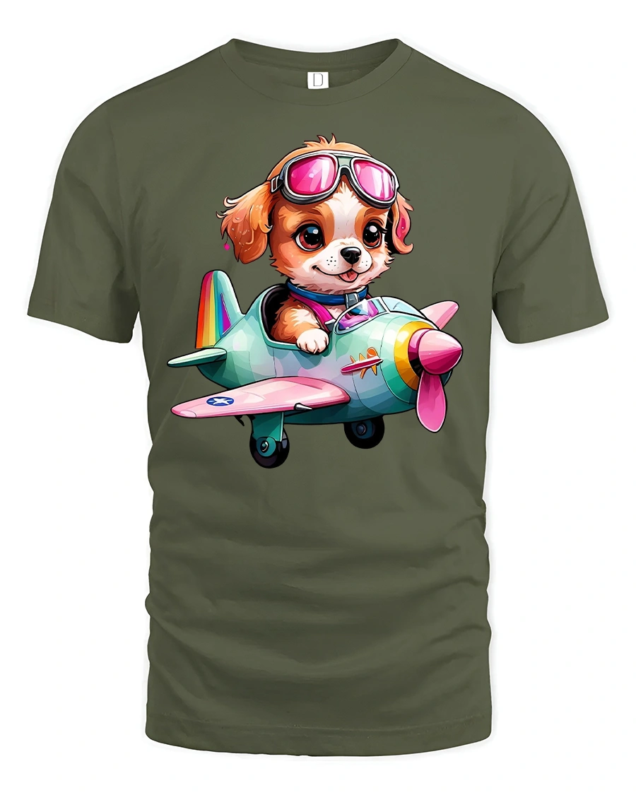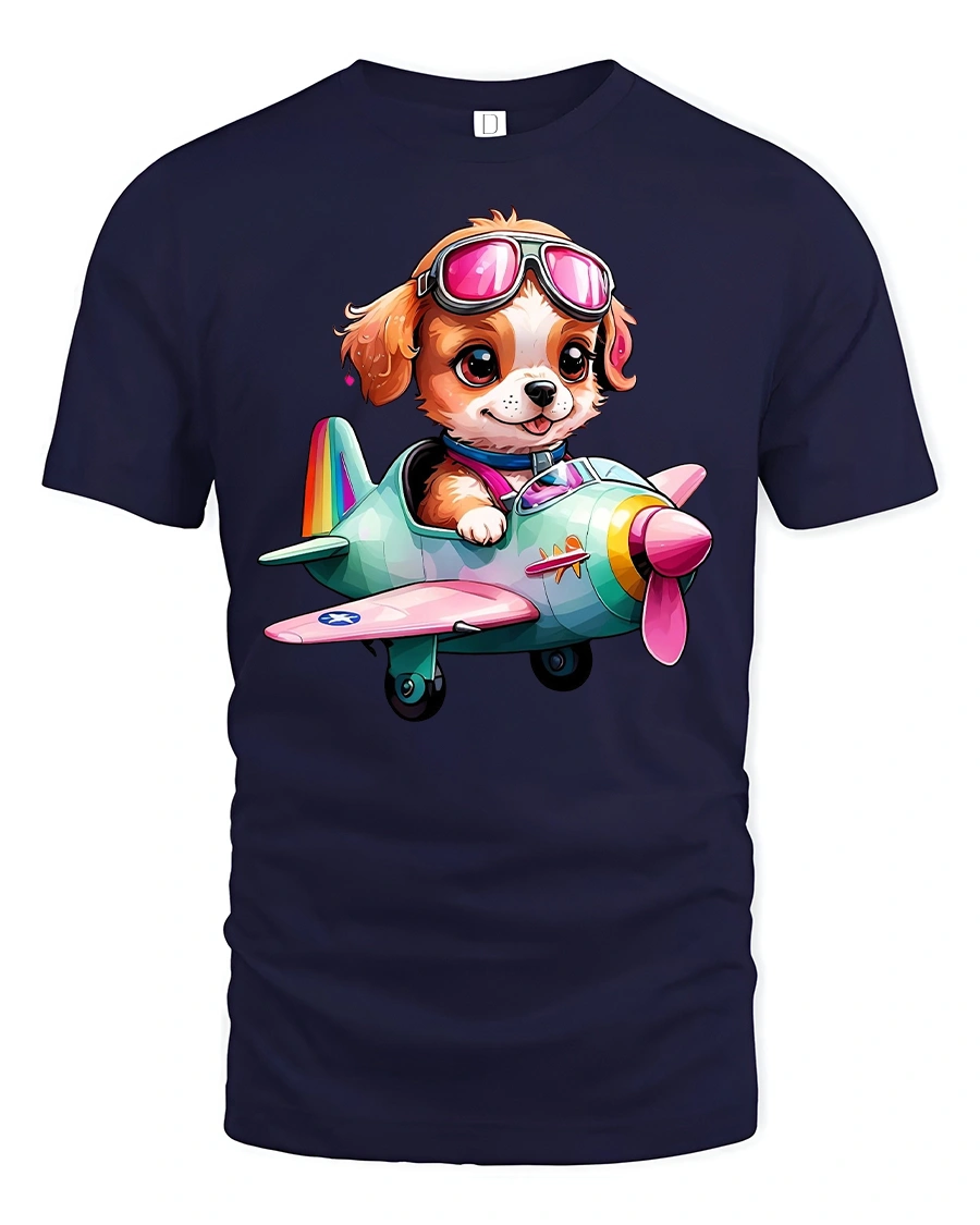 Cute Puppy Pilot Tee with Adorable Cartoon Airplane Art brings a joyful and imaginative style to your wardrobe. Featuring a lovable puppy wearing pink aviator goggles and flying a colorful airplane, this tee is full of charm and fun. The vibrant details, playful expression, and bright colors create an uplifting design that appeals to dog lovers, aviation fans, and anyone who appreciates cute artwork.