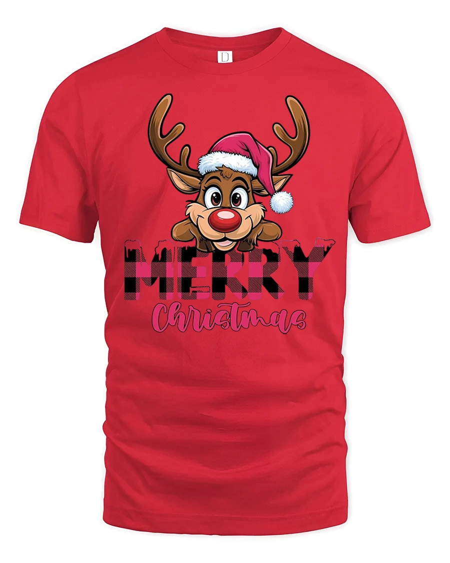 Cute Reindeer Merry Christmas Plaid Holiday Fun Tshirt brings cheerful holiday spirit to your festive wardrobe with its adorable red-nosed reindeer and bold plaid “Merry Christmas” design. Featuring bright colors, expressive cartoon details and a cozy seasonal theme, this tee is perfect for anyone who loves cute Christmas characters and playful holiday fashion. It’s a joyful and eye-catching design that spreads instant Christmas cheer.