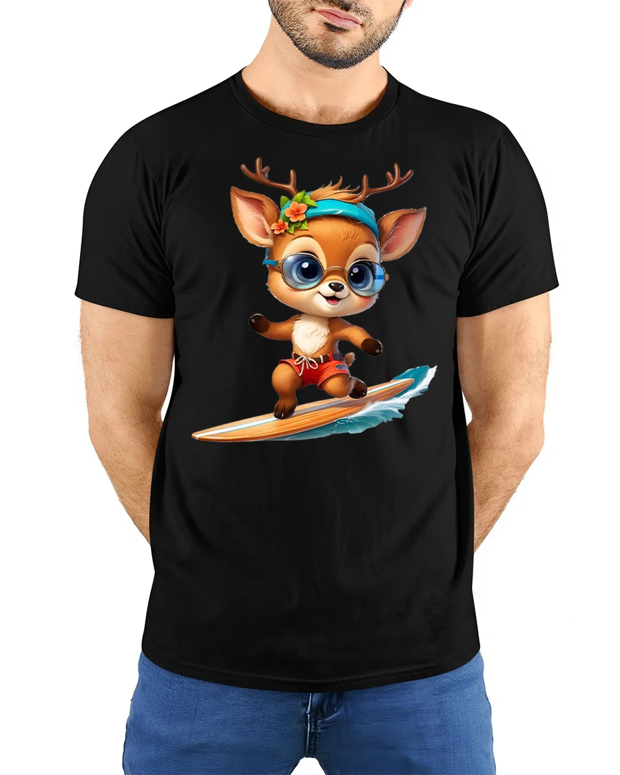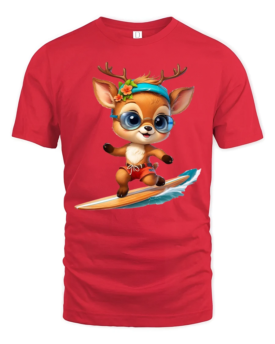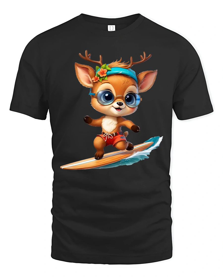 The Cute Surfing Deer Cartoon Tee With Playful Summer Adventure Vibes brings instant happiness with a charming and energetic illustration.
