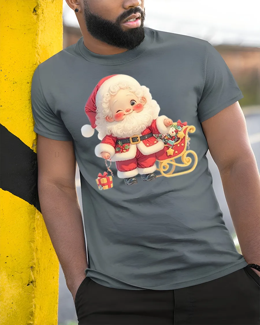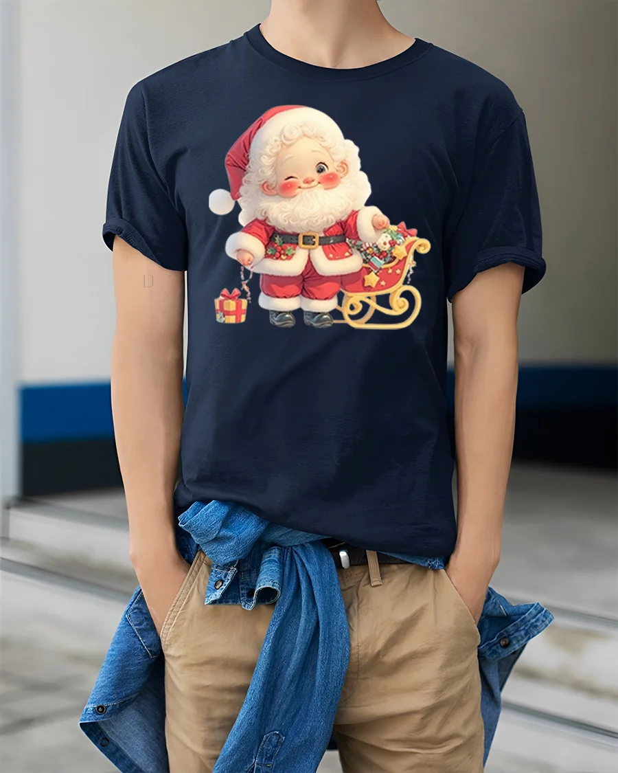 Made from comfortable, durable fabric, this Christmas tshirt is ideal for family gatherings, office parties, school events, holiday photos or cozy winter days at home. The high-quality print keeps Santa’s charming face and the colorful sleigh looking bright and vibrant wash after wash. Whether you’re searching for a fun seasonal outfit or a thoughtful Christmas gift, this tee adds warmth and magic to every celebration.