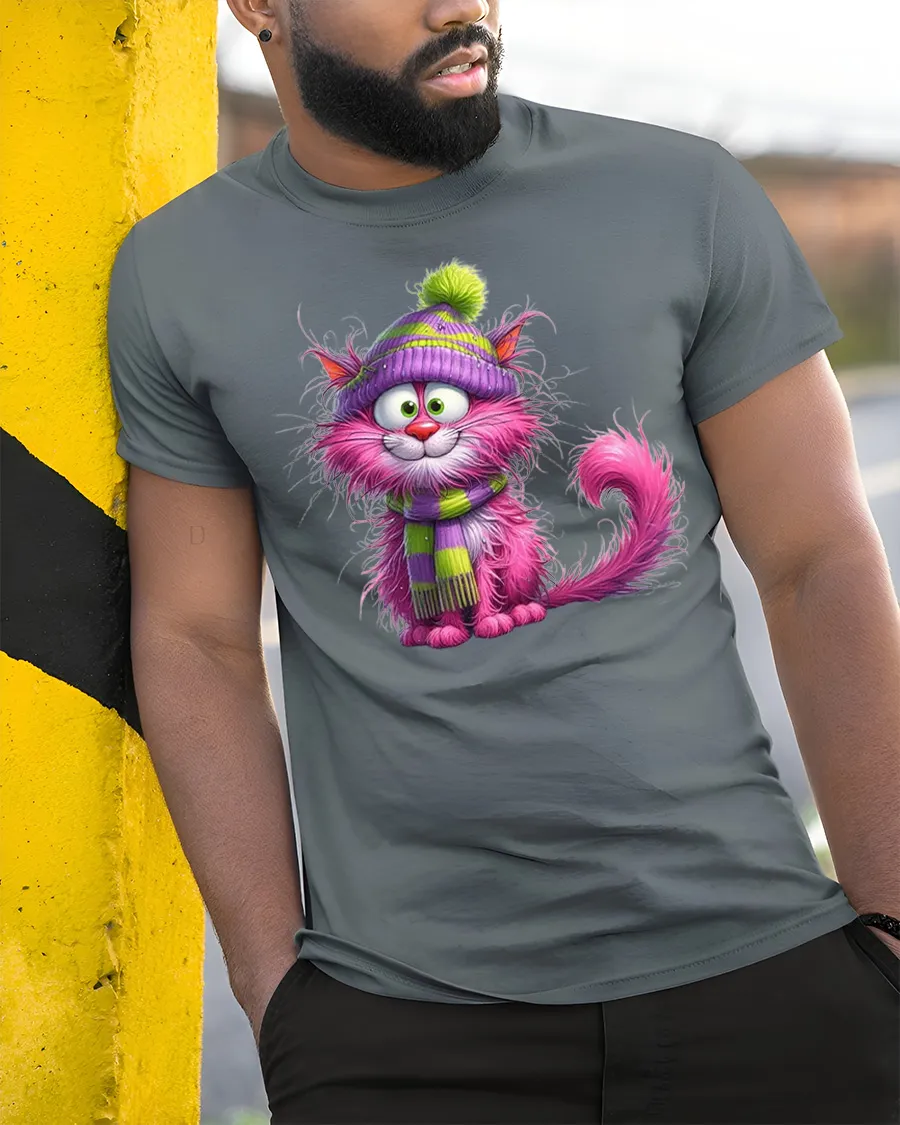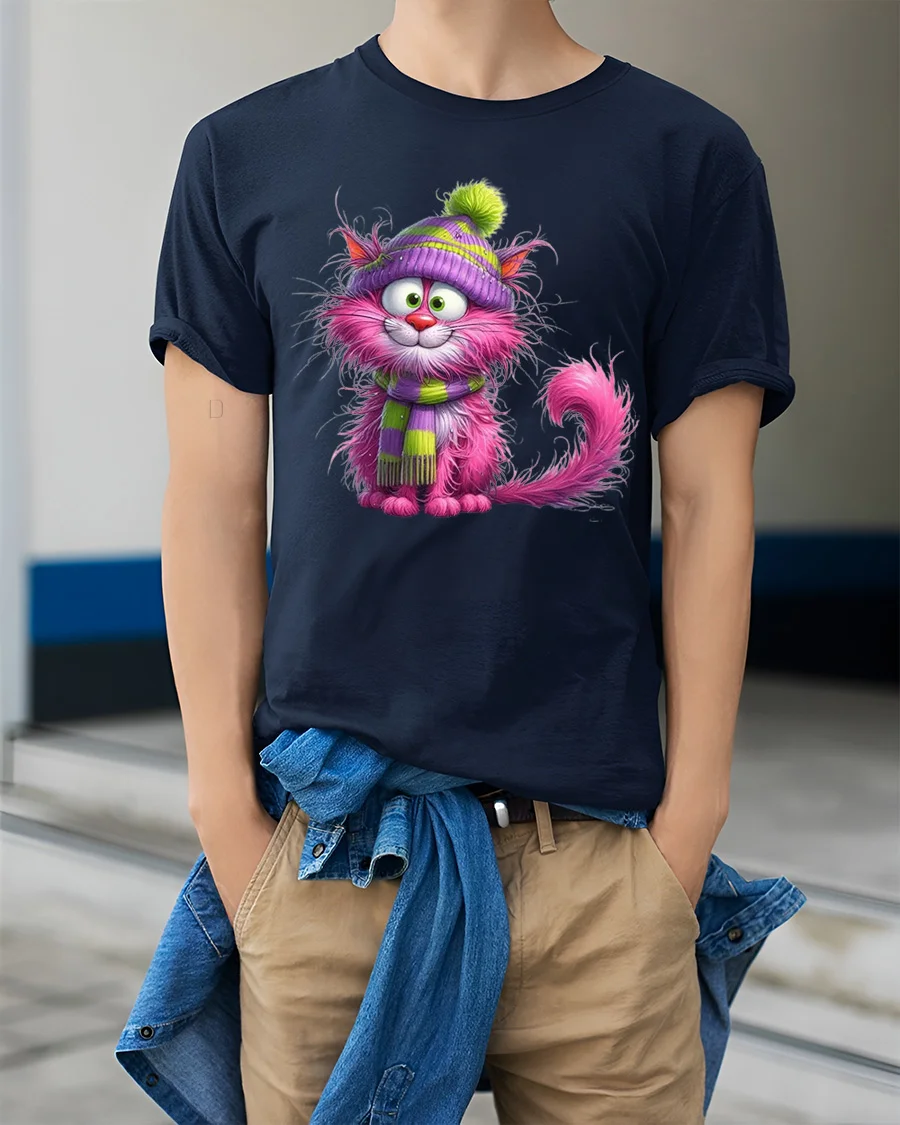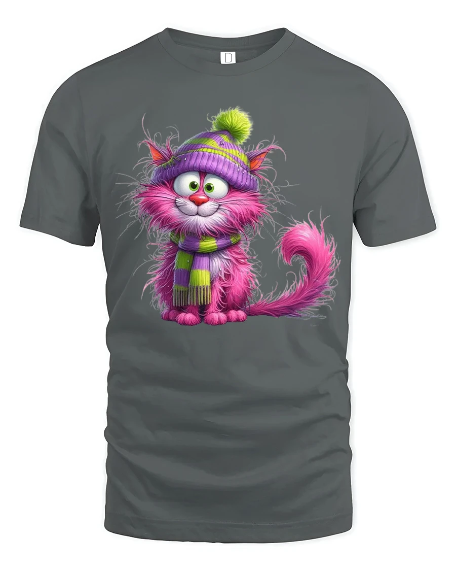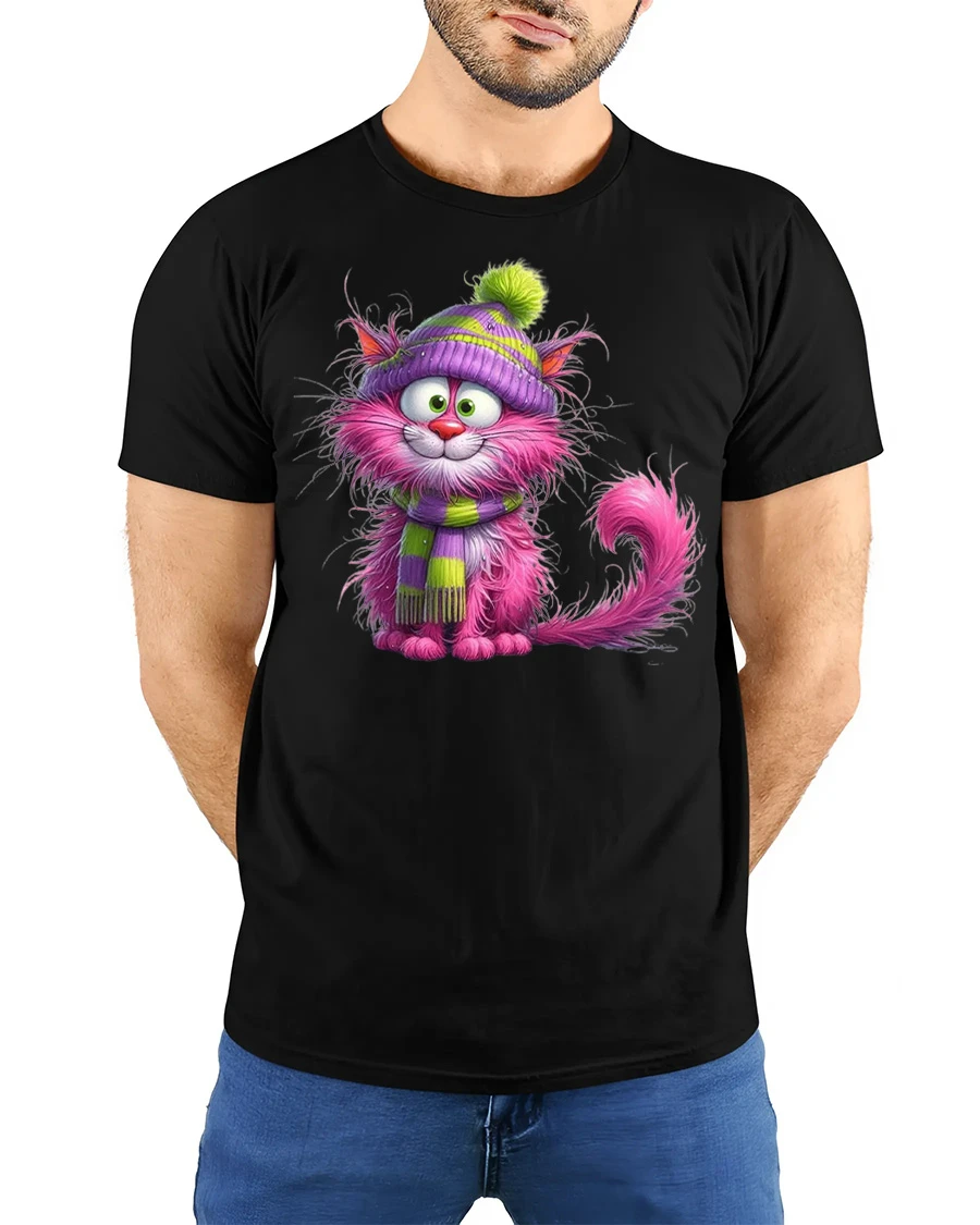 Stay warm in style with the Cute Winter Cat Graphic T Shirt Cozy Kitty Style that brings charm and personality to your everyday wardrobe. Featuring an adorable fluffy pink cat wearing a colorful beanie and scarf, this graphic t shirt captures the playful spirit of winter with a fun and heartwarming twist. The detailed cartoon artwork highlights bright eyes, soft fur texture, and cozy accessories that instantly make this design stand out.