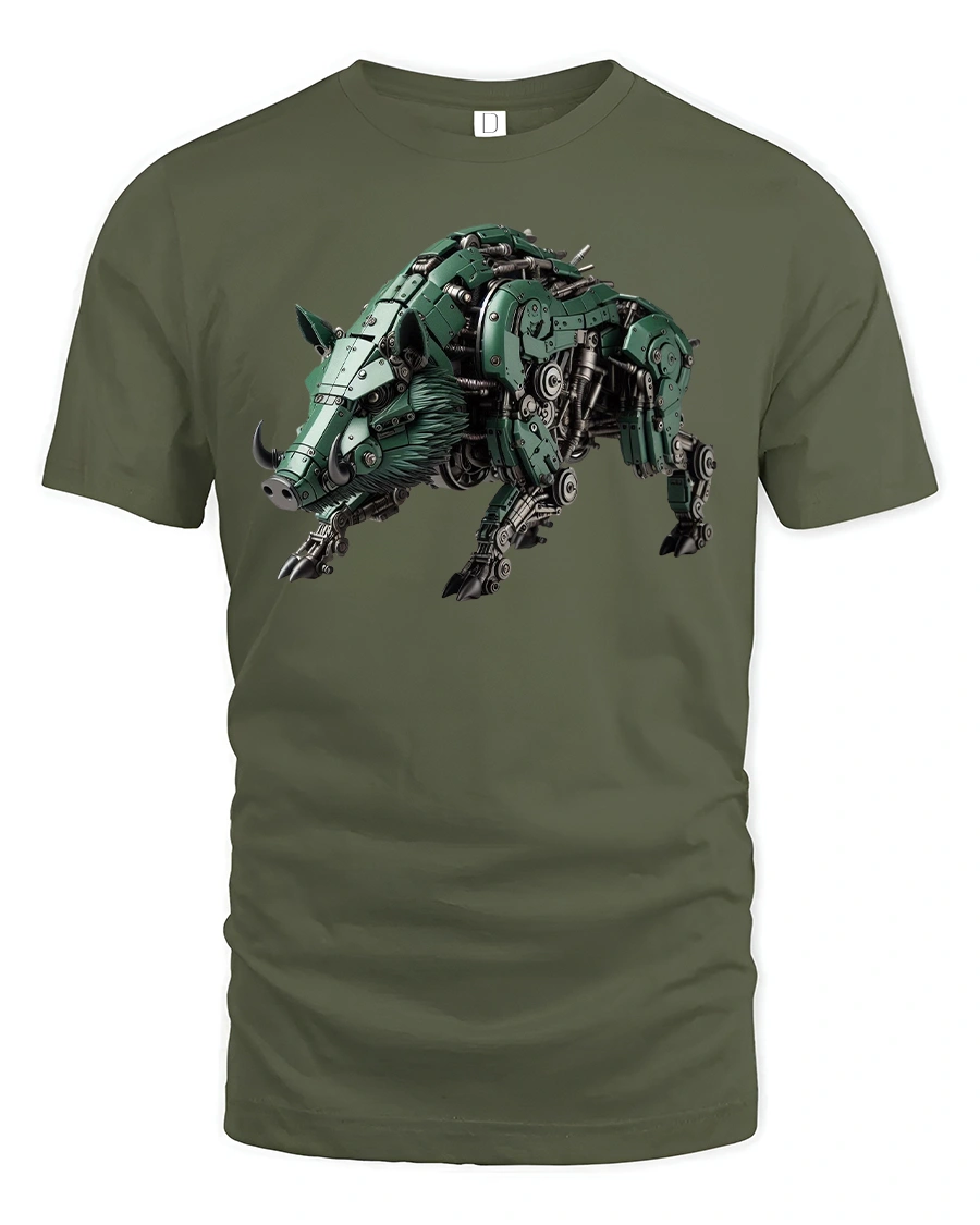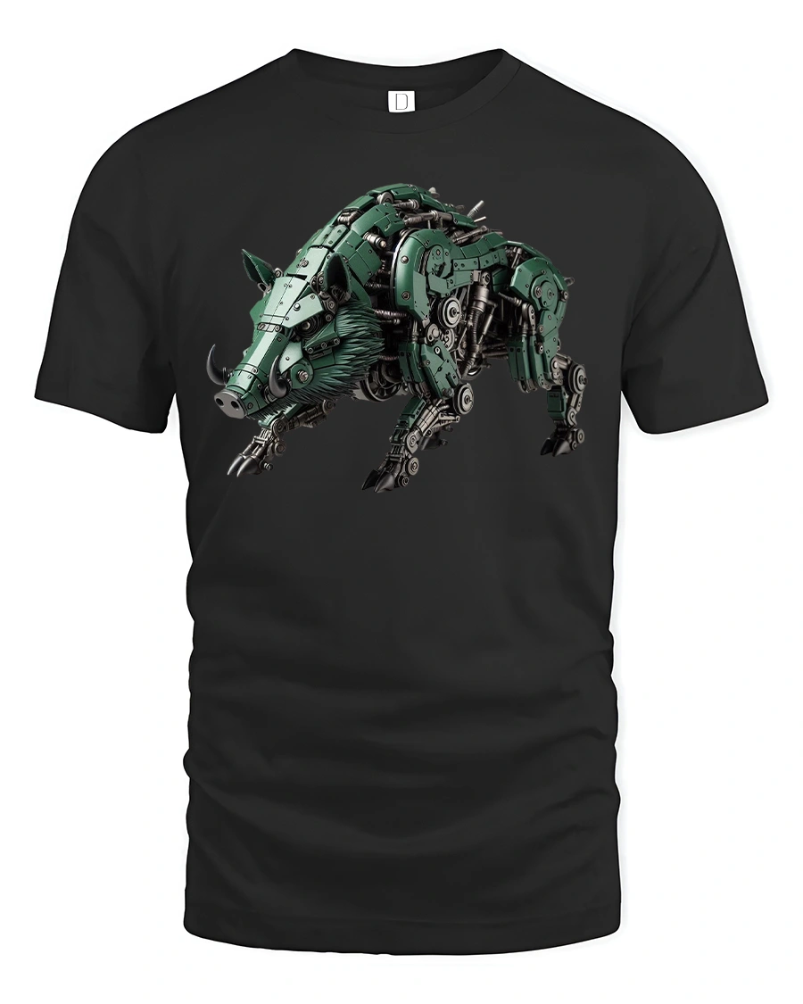 Unleash futuristic power with the Cyber Mecha Boar Robot Wild Style Graphic T-Shirt. Featuring a fierce mechanical boar designed with intricate robotic details, this tee combines animal strength with sci-fi technology. The bold design makes it perfect for fans of cyberpunk, robotics, and futuristic battle styles.