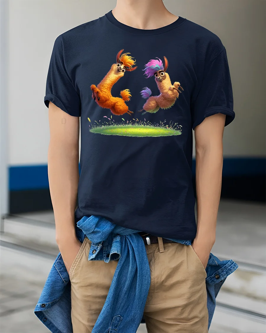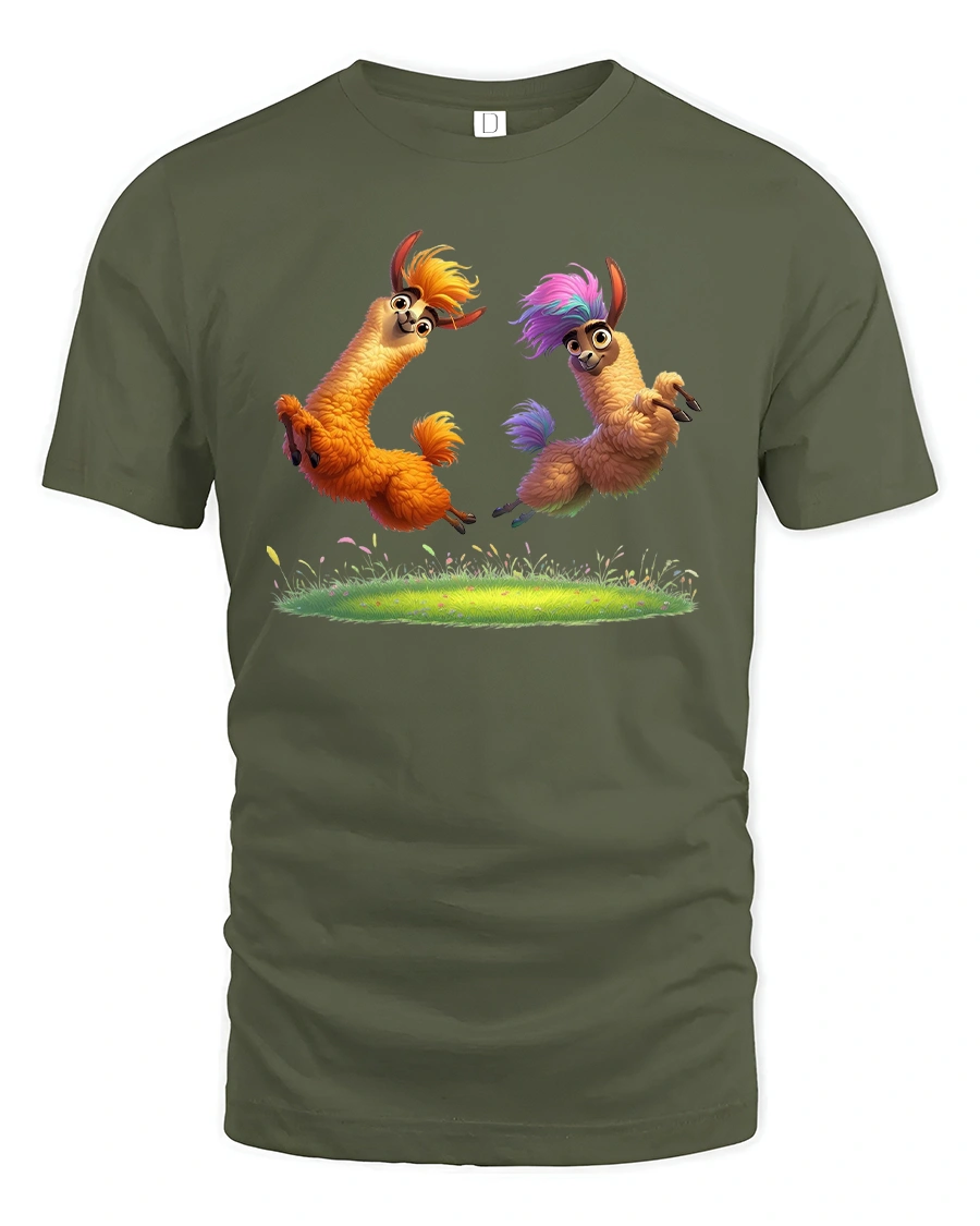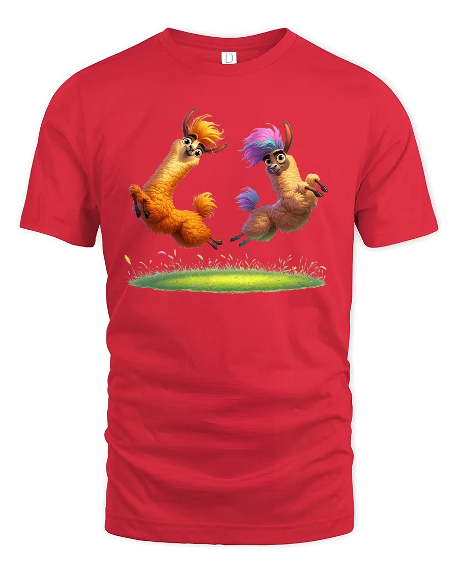 Wear it when you want to spread positive energy — because nothing says joy like two llamas having the time of their lives!