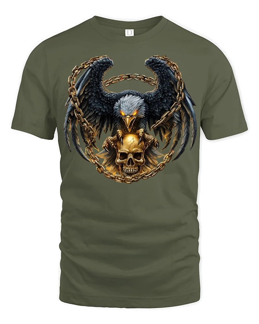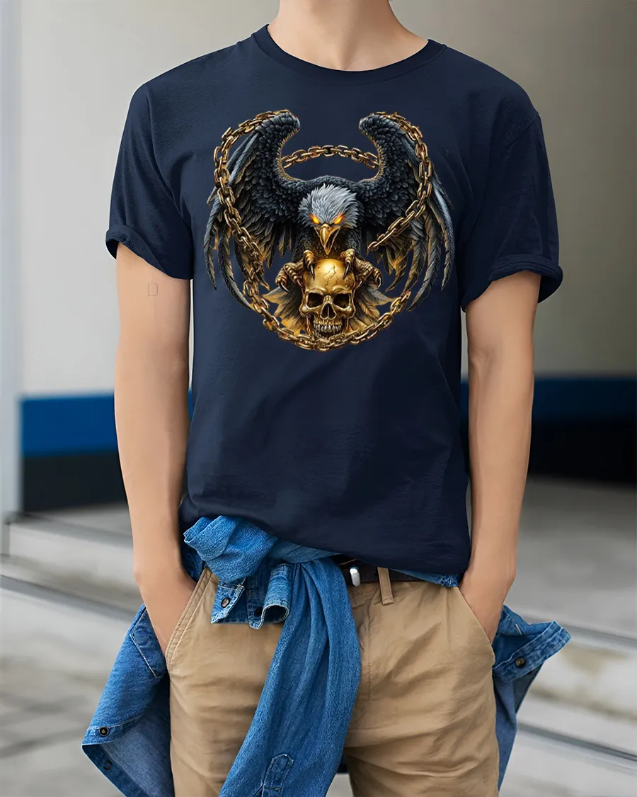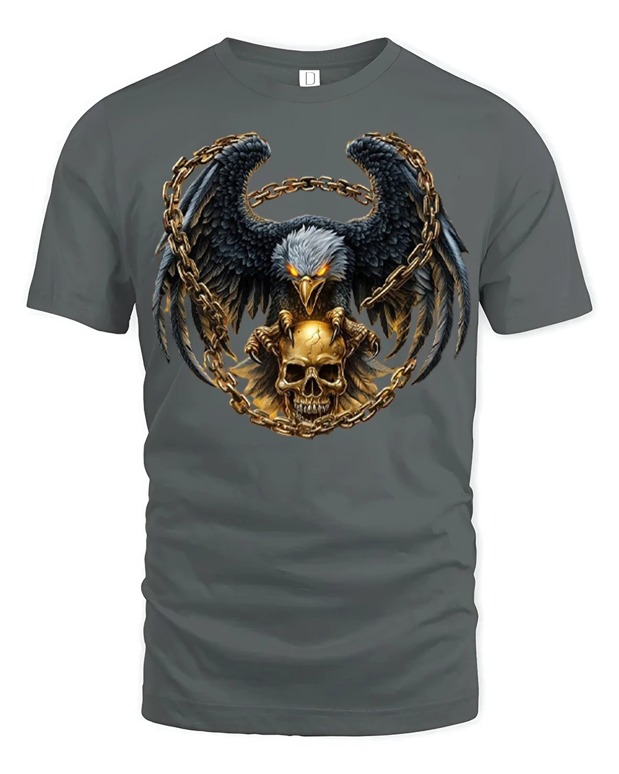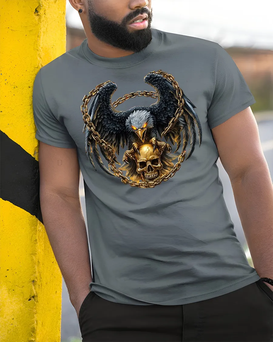 Dark Eagle Skull Chain Graphic T Shirt Gothic Power Style delivers a bold and intense design that captures strength dominance and raw energy.